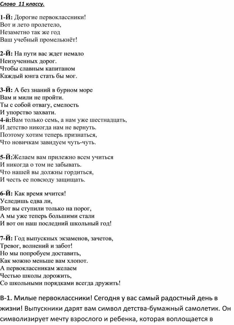 Слова 11 класса на 1 сентября современные 79 фото