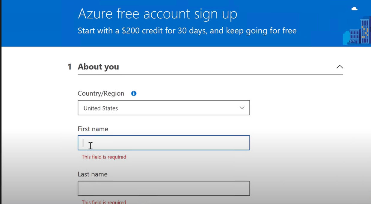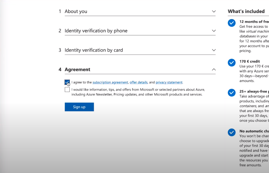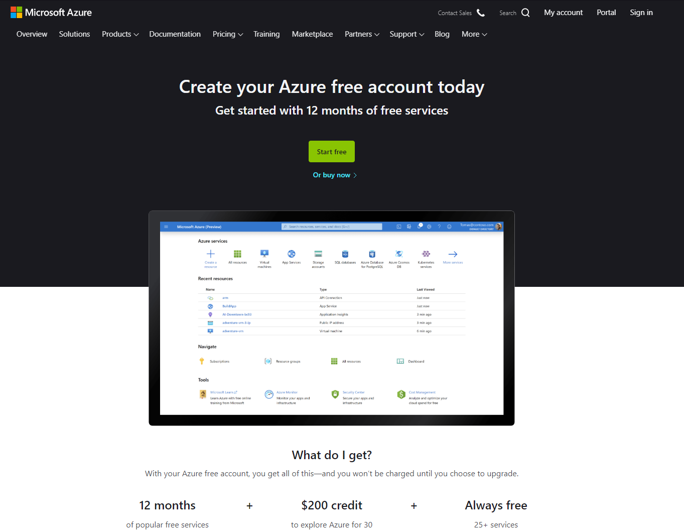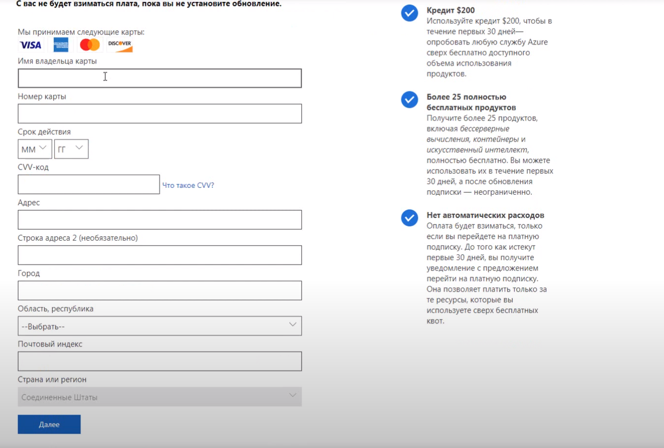 Заходим на сайт azure.com/free