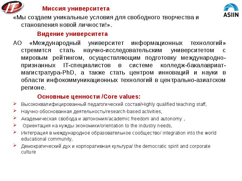 адачей университета является