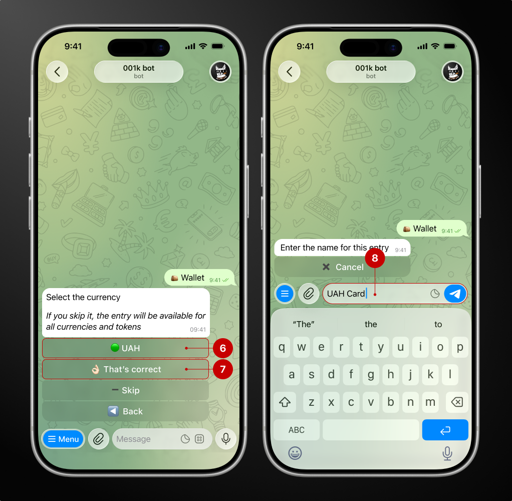 📍 Adding a new entry — a cryptocurrency wallet, bank card, or UID.