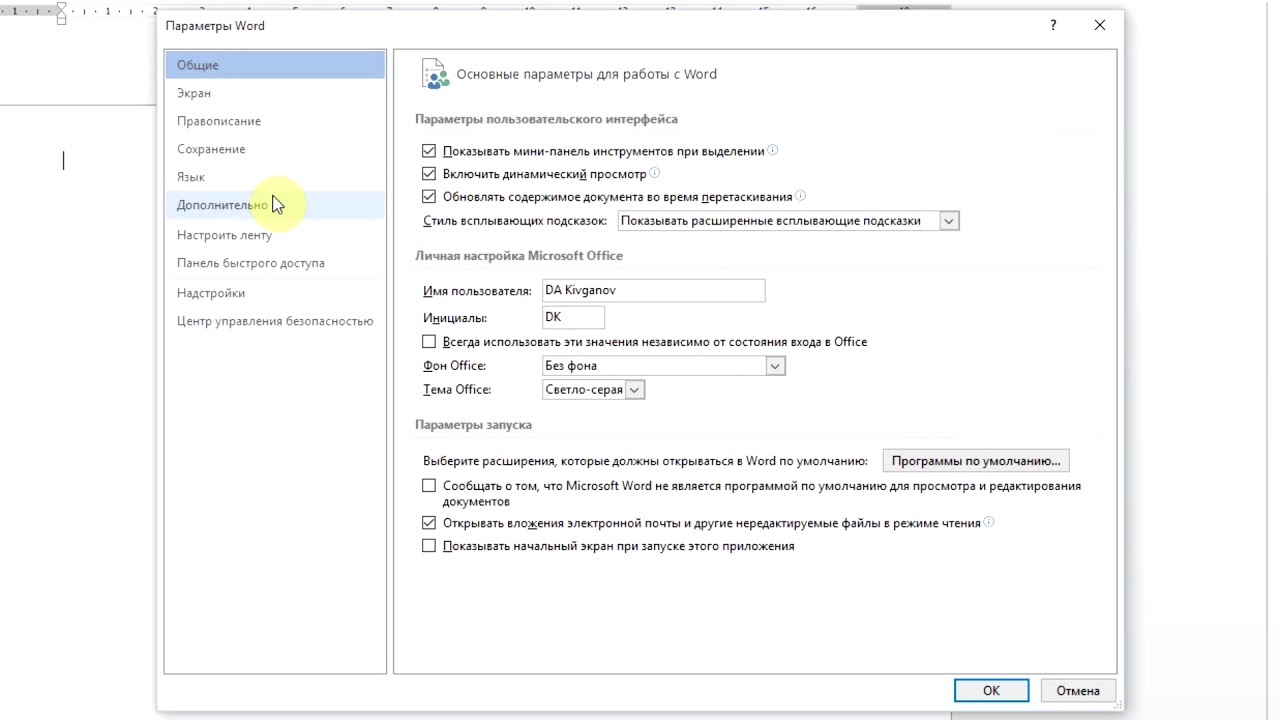 ак изменить параметры ворд
