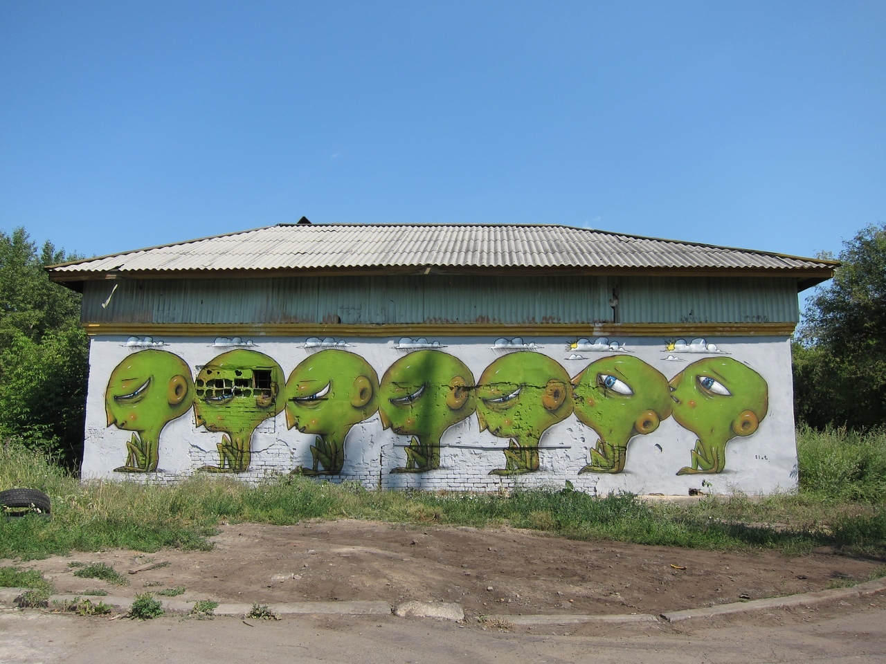 Работы на Уралмаше — одни из самых контекстуальных, тут почти каждый арт отдает дань уважения эстетике района.
