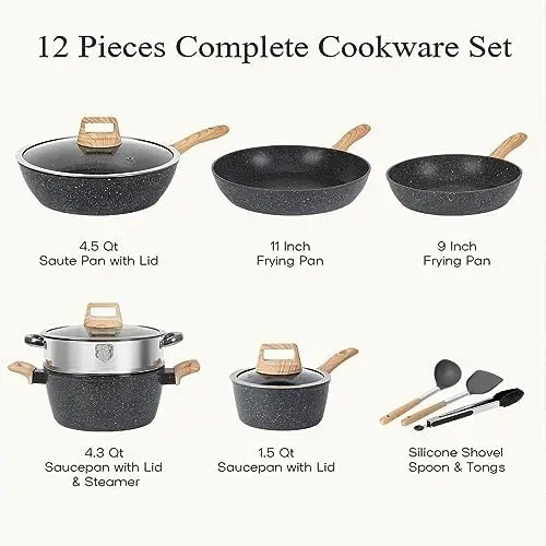 "and Pans Set, Nonstick Kitchen Cookware Sets, 12 Pcs Induction Cookware Granite Cooking Set with PFOS & PFOA Free Frying Pan Pla" * Buy Now With Free Shipping Just For $93