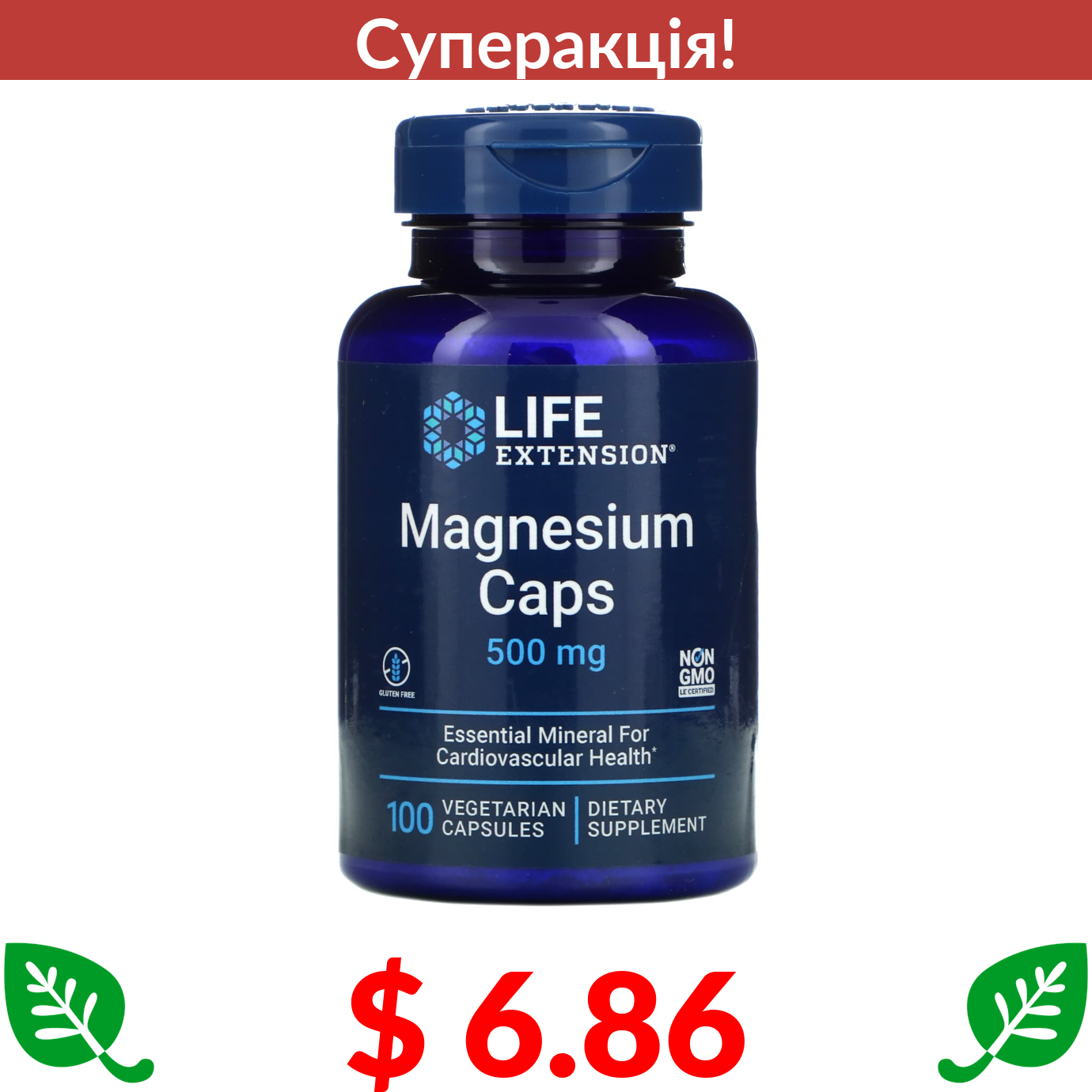 $ 6.86 Life Extension, капсули з магнієм, 500 мг, 100 вегетаріанських капсул