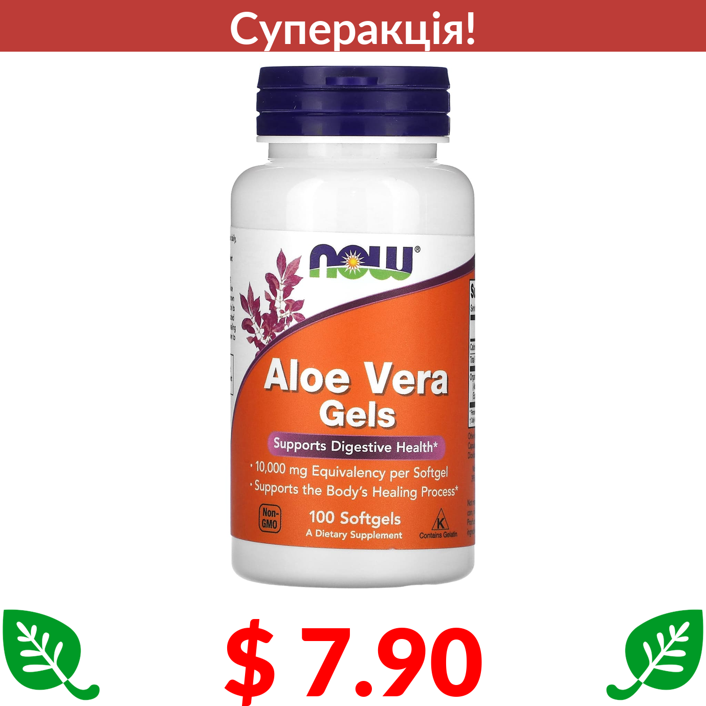 $ 7.90 Now Foods, гель алое вера, 100 капсул