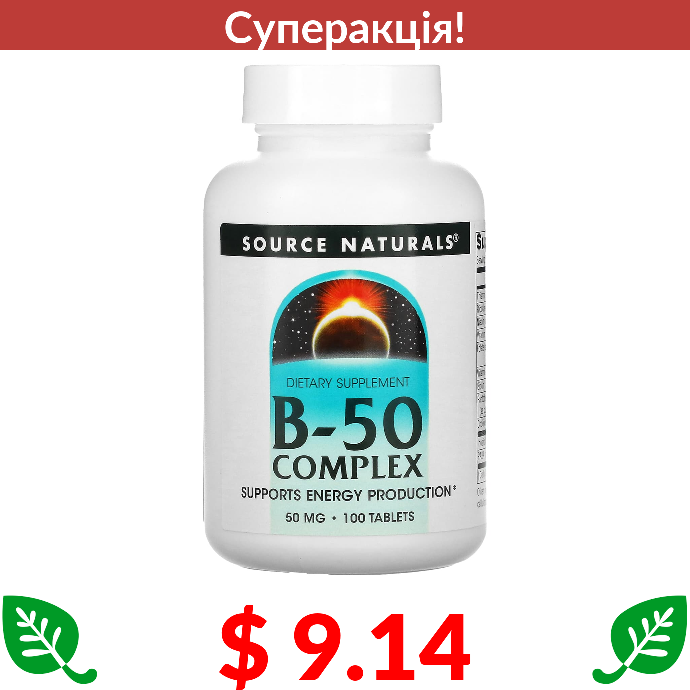 $ 9.14 Source Naturals, комплекс B-50, вітаміни групи B, 50 мг, 100 таблеток