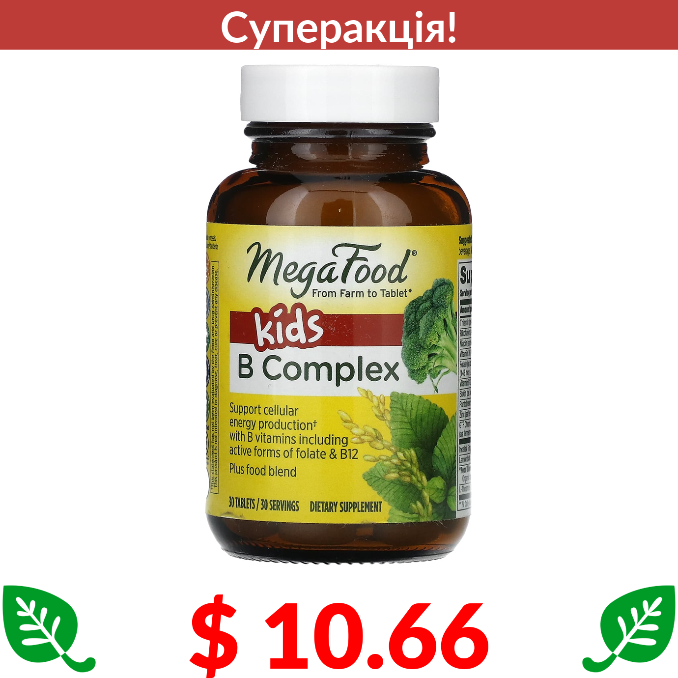 $ 10.66 MegaFood, Комплекс вітамінів групи B для дітей, 30 таблеток