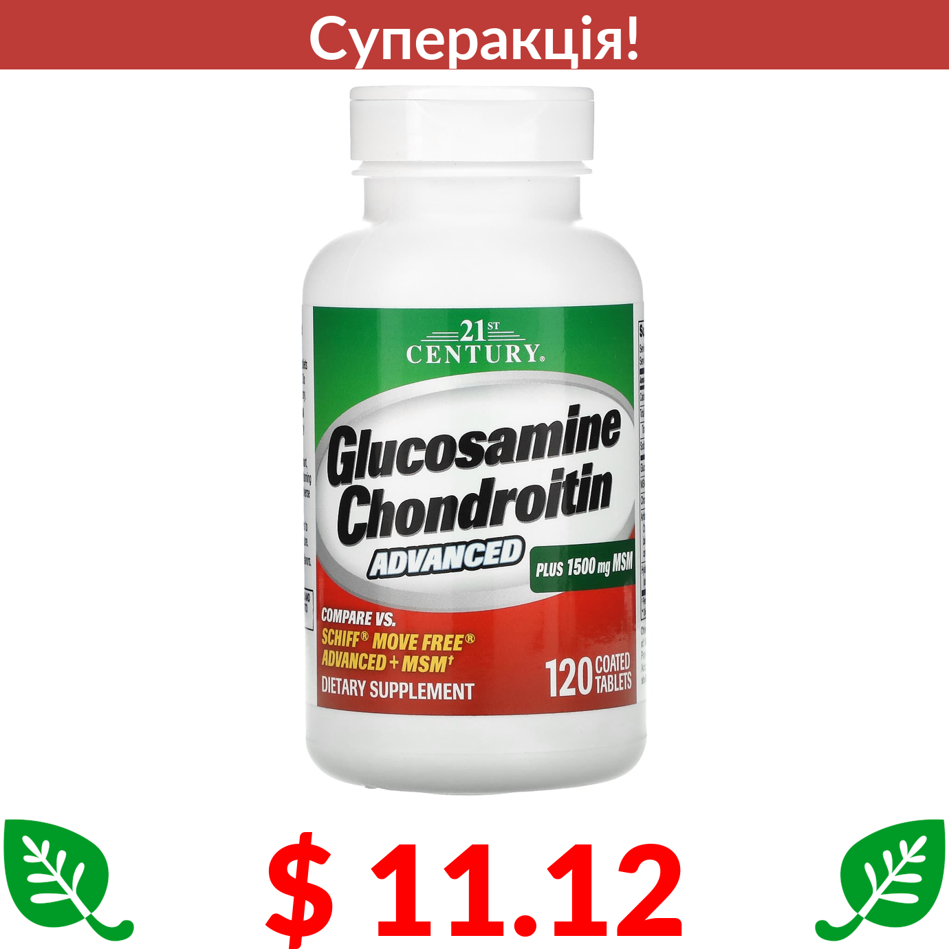 $ 11.12 21st Century, глюкозамін і хондроїтин із вдосконаленою формулою, 120 таблеток, вкритих оболонкою