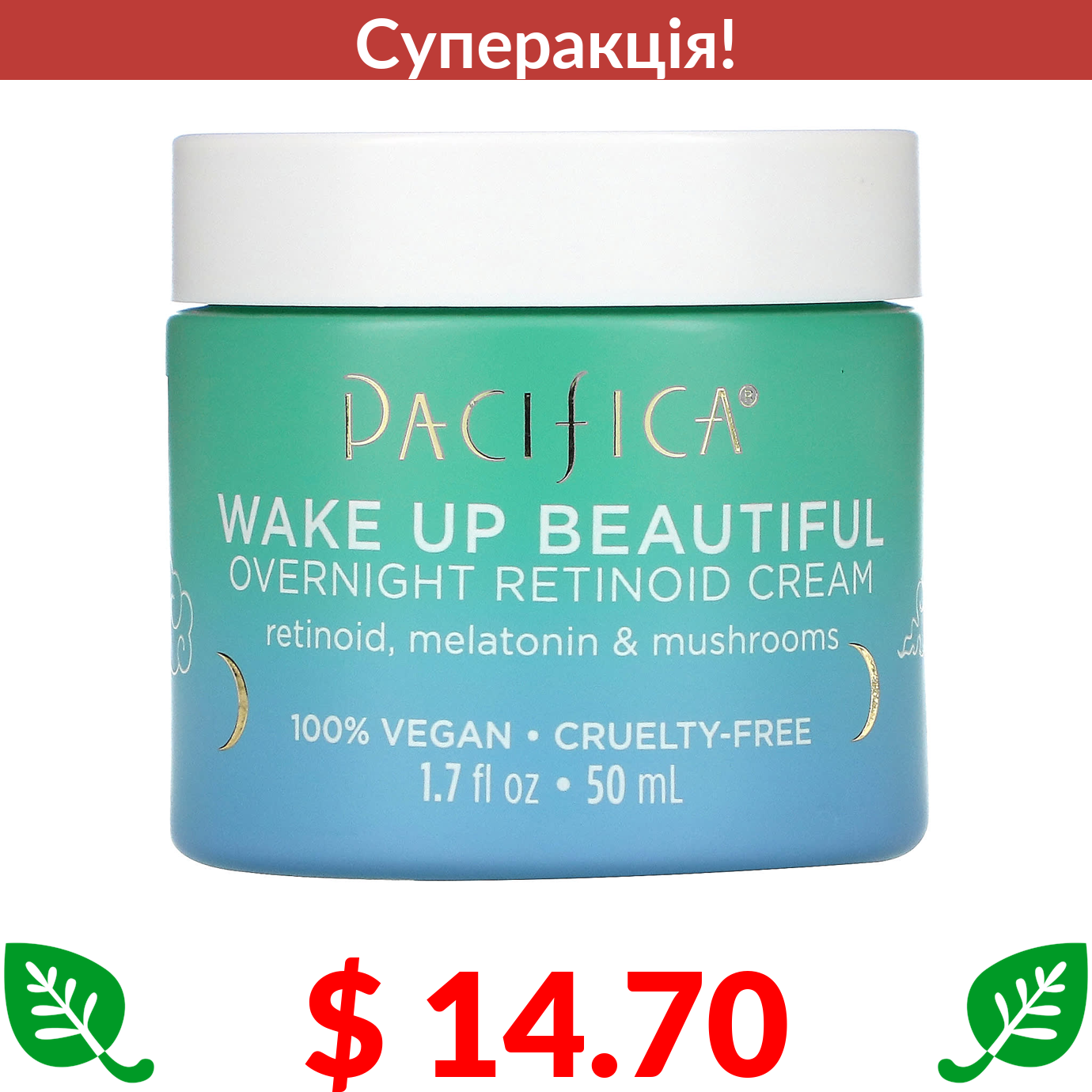 $ 14.70 Pacifica, Wake Up Beautiful, Нічний ретиноїдний крем, 1,7 рідкої унції (50 мл)