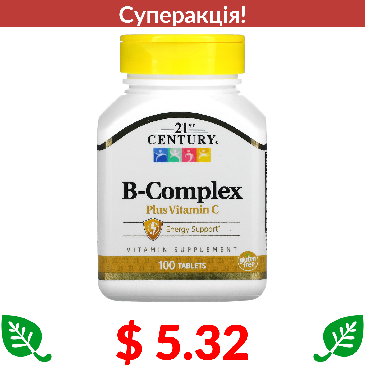 $ 5.32 21st Century, комплекс вітамінів групи B з вітаміном C, 100 таблеток