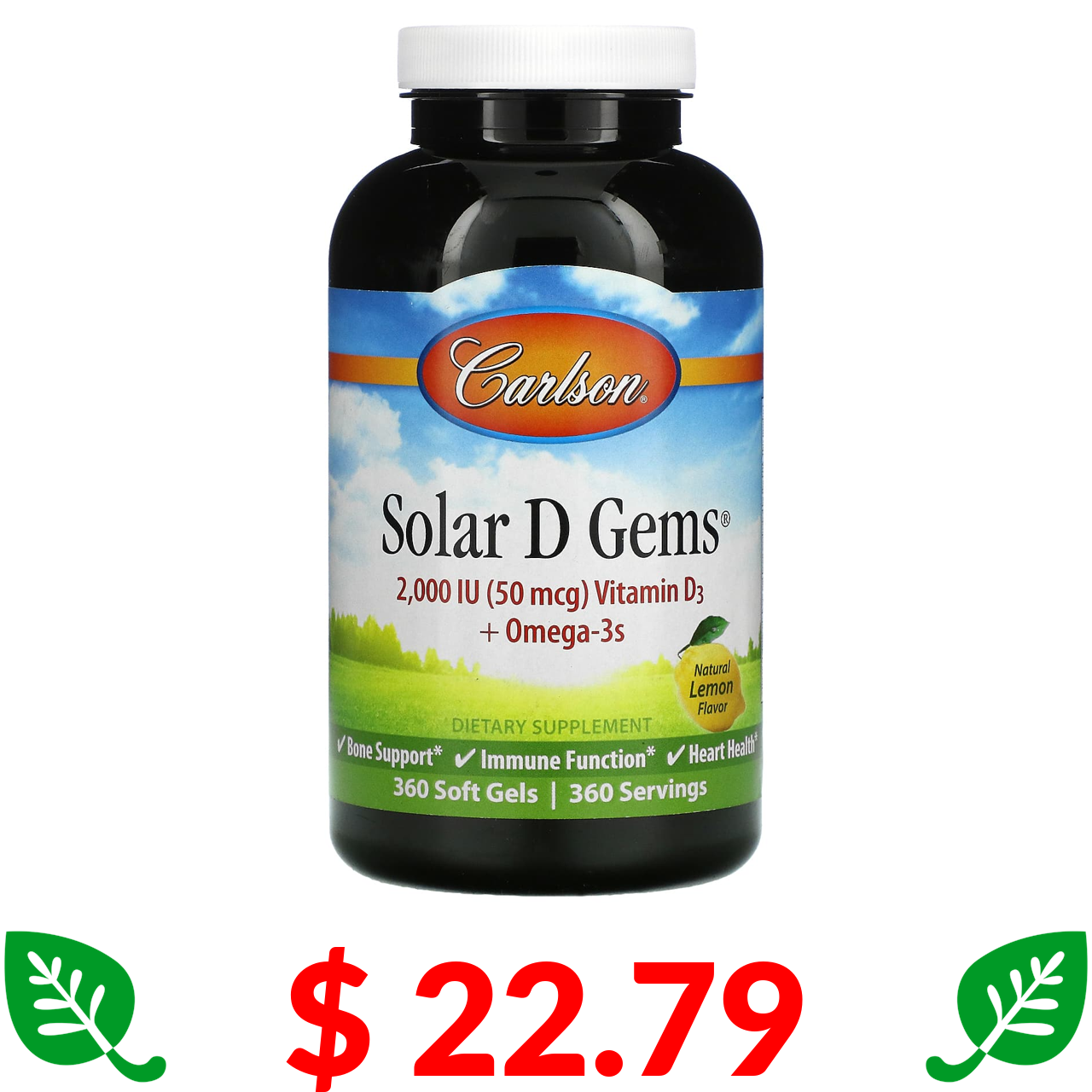 $ 22.79 Carlson, Solar D Gems, вітамін D3 + омега-3, натуральний лимон, 360 м’яких таблеток