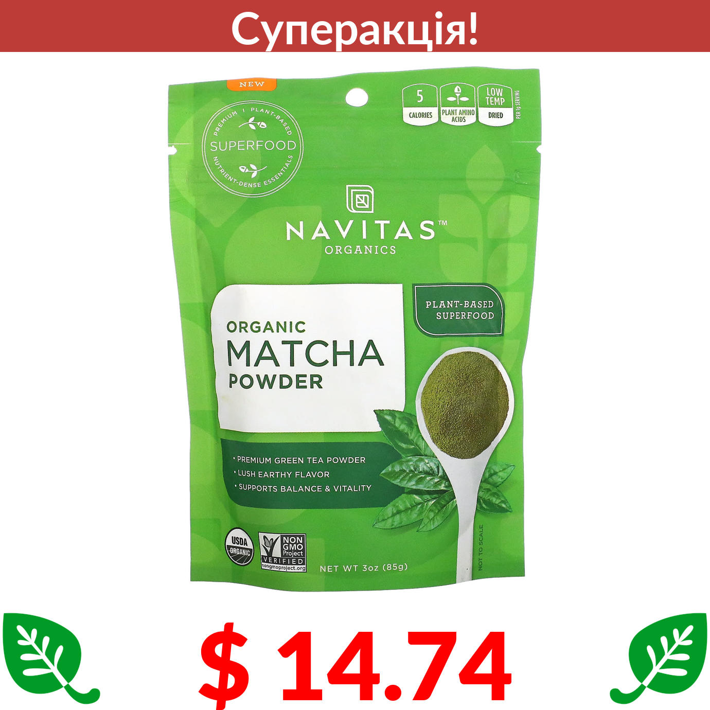 $ 14.74 Navitas Organics, Органічний порошок матча, 3 унції (85 г)