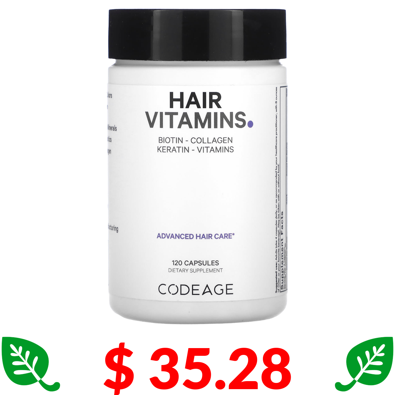 $ 35.28 Codeage, вітаміни для волосся, біотин, колаген і кератин, 120 капсул