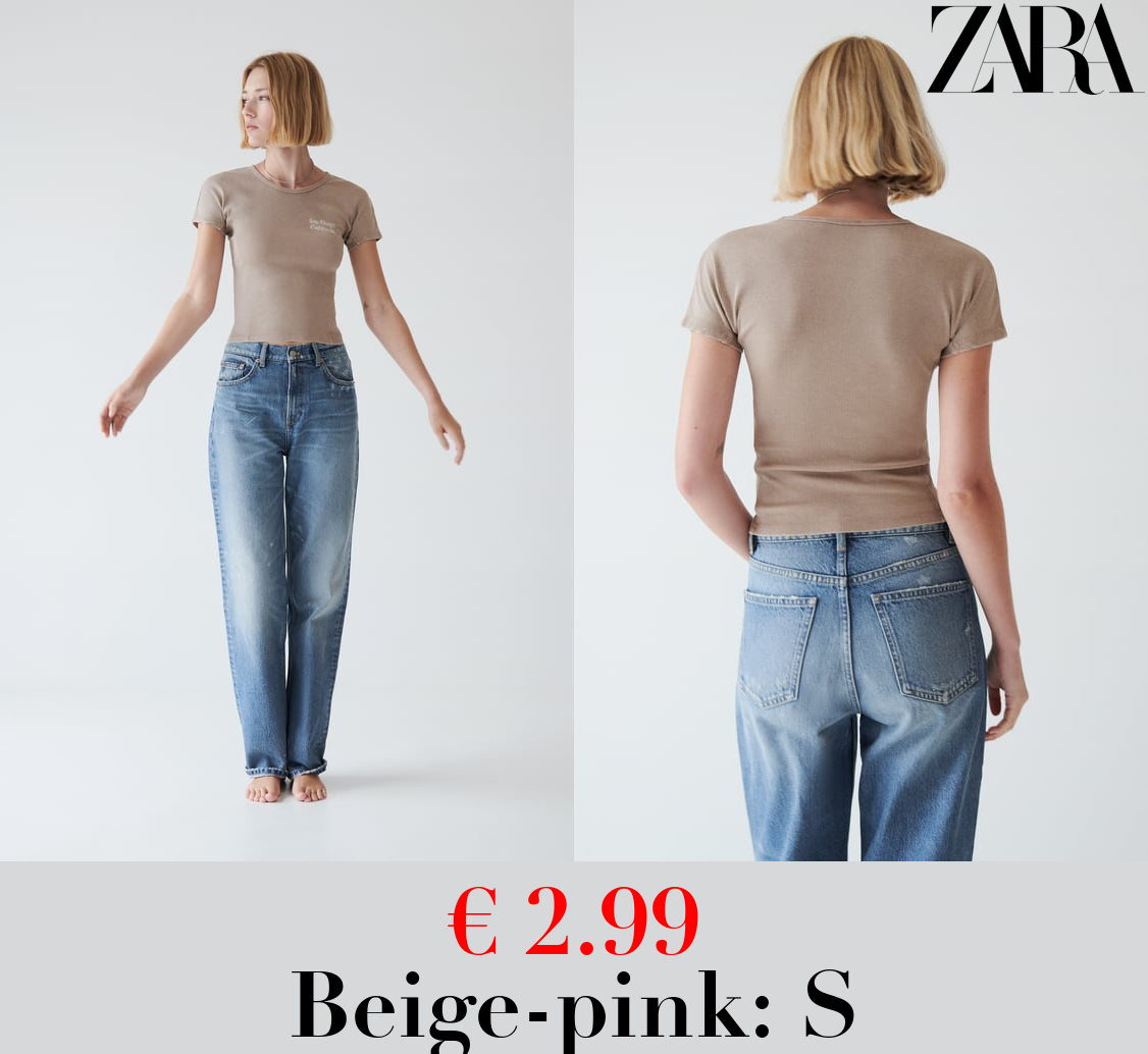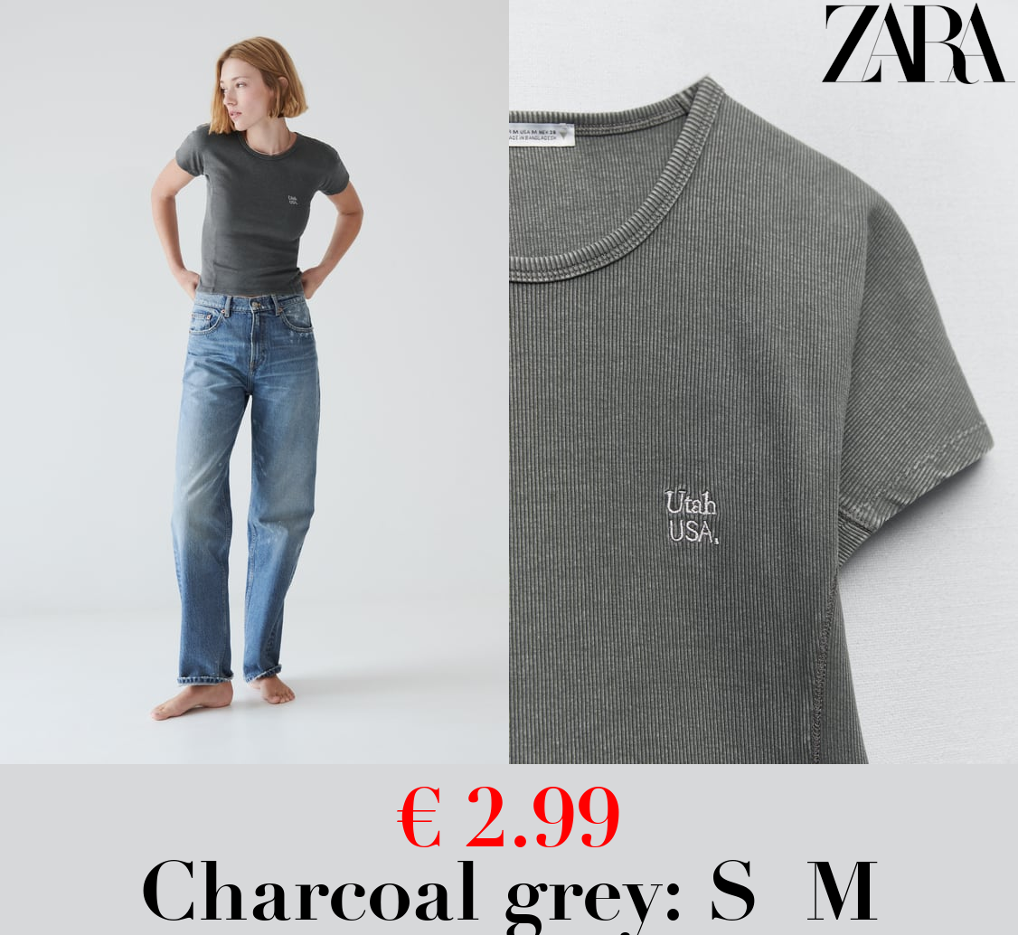 € 2.99 FADED RIBBED T-SHIRT WITH SLOGAN