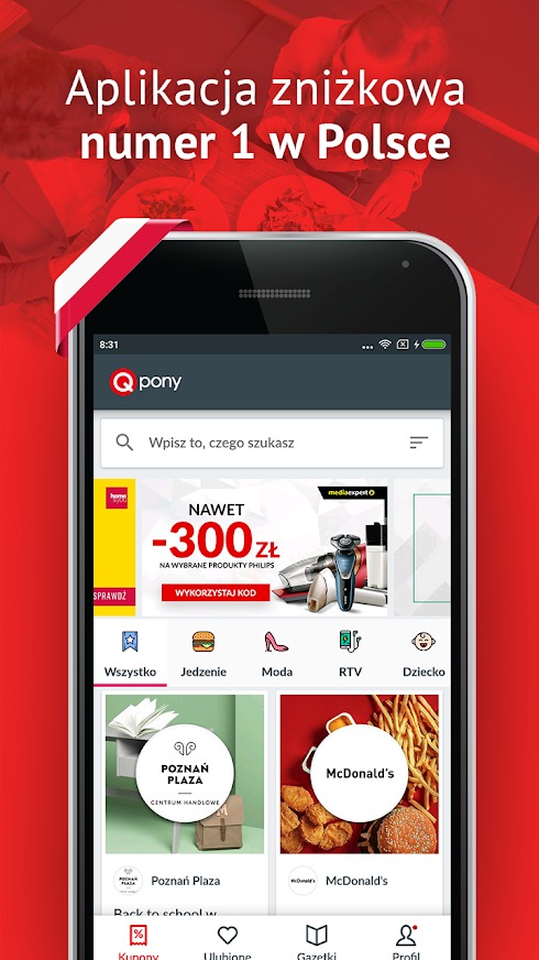 📌 Qpony. Наверное самое популярное бонусное/скидочное приложение в Польше. В нем собраны различные купоны, скидки и бонусы в тех или иных магазинах, фастфудах и пр. Чтобы воспользоваться скидками не обязательно теперь собирать газетки и купоны в магазинах, достаточно просто открыть приложение и найти актуальные скидки в том или ином городе, вывести на экран скидочный купон или код и предъявить его на кассе.
