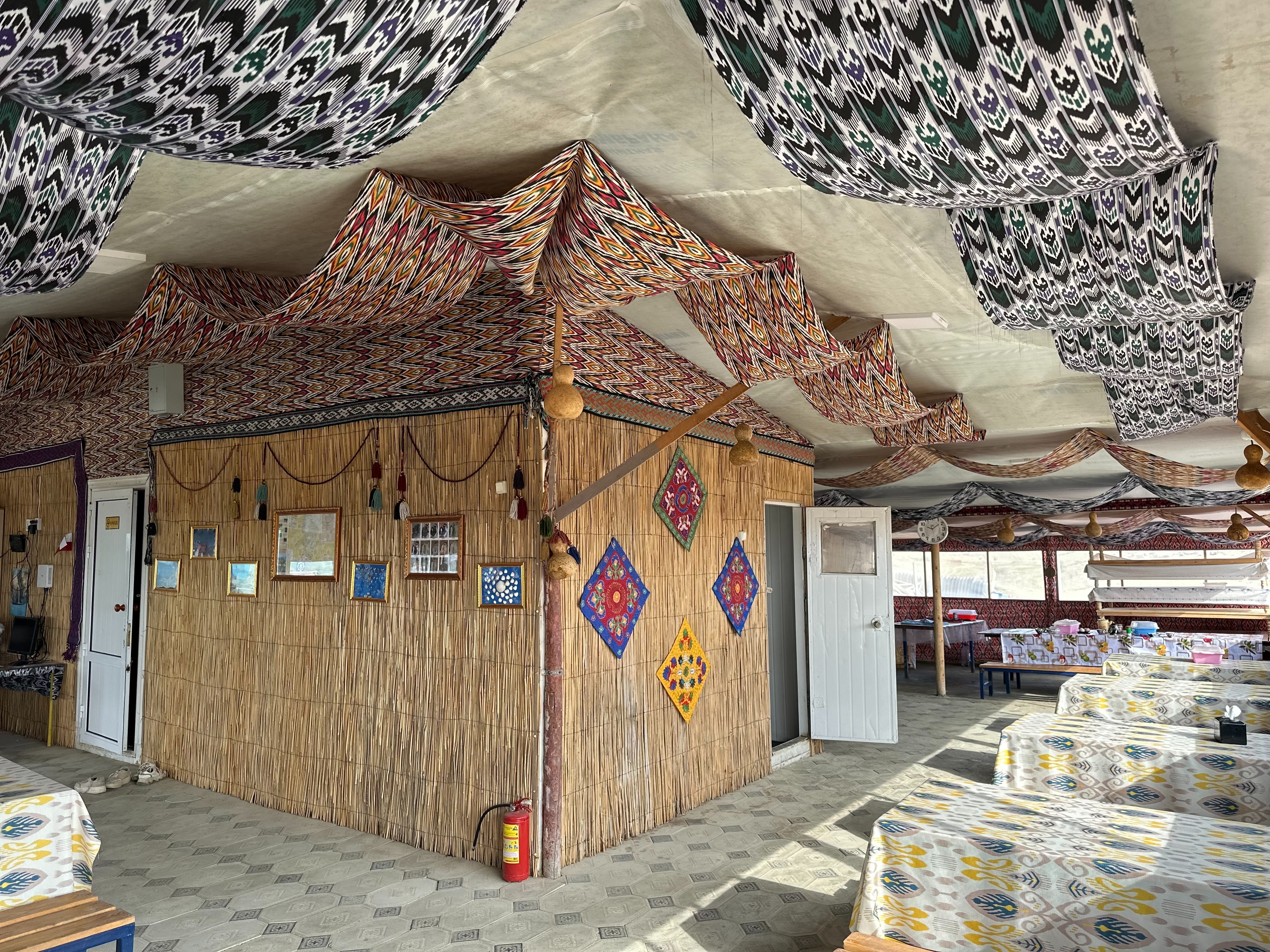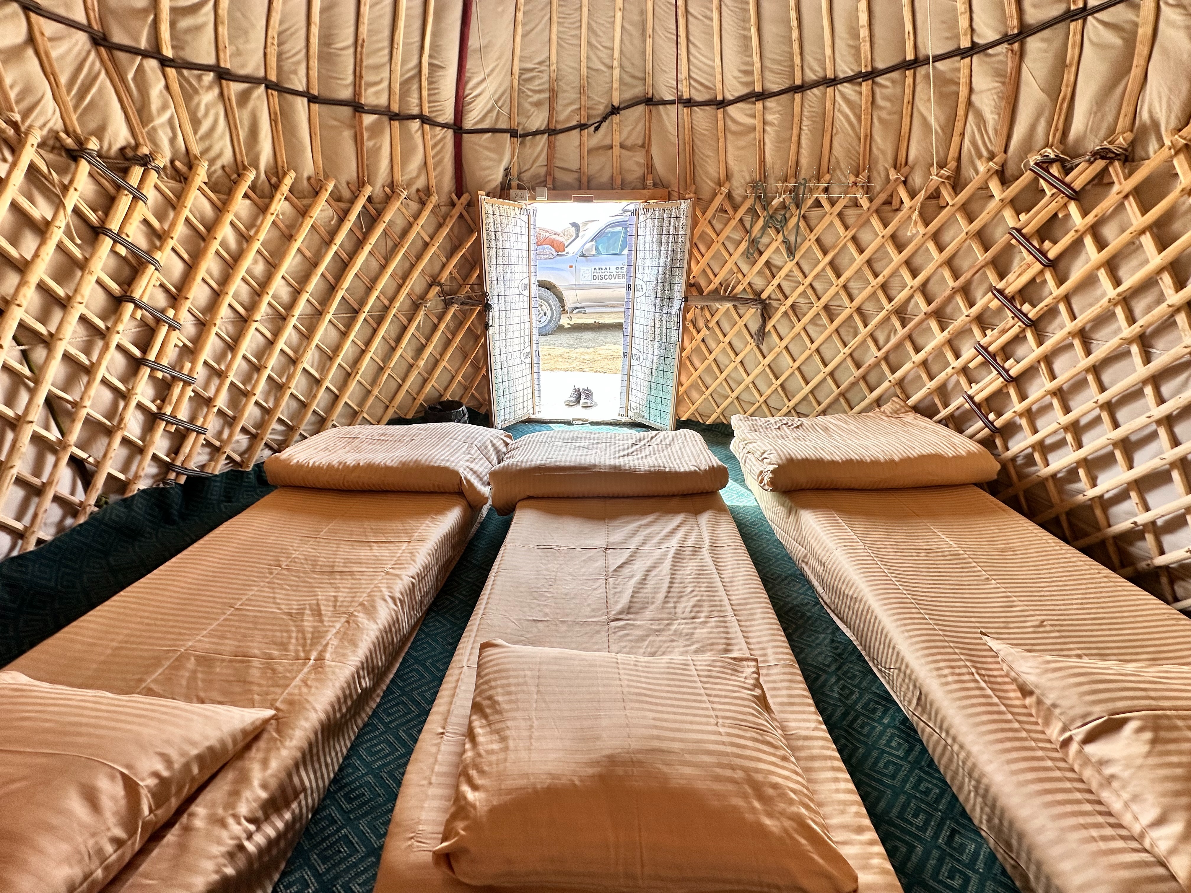 Заселение в юртовом лагере. В лагере имеется душ с чистой пресной водой и уборная.
