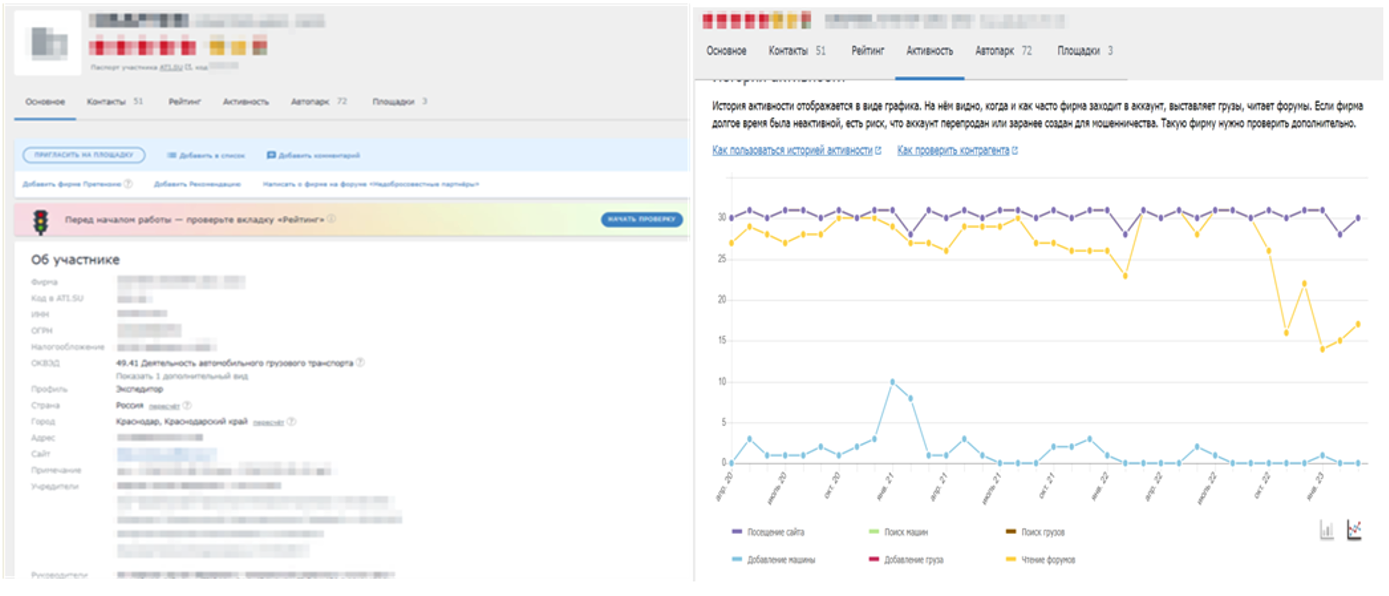 По меркам транспортной биржи очень старая регистрация, 51 (пятьдесят один) контакт сотрудников, постоянная активность и очень интересные сведения в истории изменения контактной информации. Итак, мы начинаем с самого начала этой непрекращающейся «увлекательной» налоговой истории на рынке грузоперевозок. Действующее лицо - ООО «Герой нашего рассказа » (далее по тексту - ГНР).