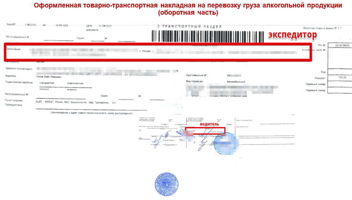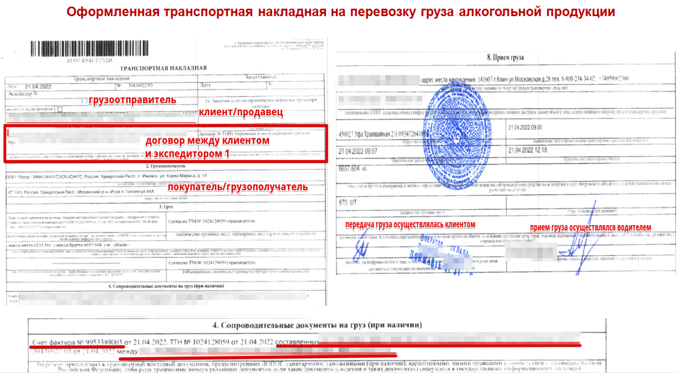 Изначально уже в данный документ включается организация из Краснодарского края, которая не имеет никакого отношения к сделке. По приезду транспортного средства на погрузку оформляется транспортная накладная, в которой по необъяснимым причинам один из крупнейших производителей алкогольной продукции из города Клин Московской области указывает ООО «ГНР» в качестве кого-то там.