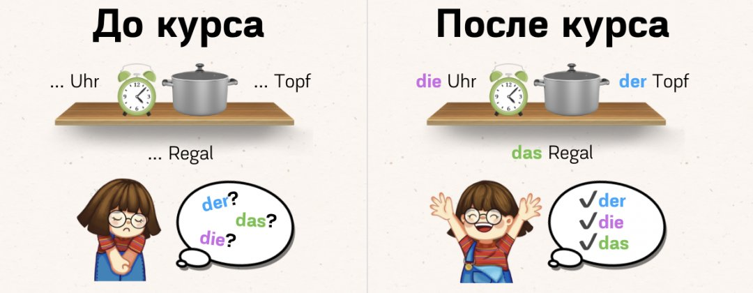 ✔️ Новички сэкономят себе много времени, благодаря курсу, т.к. изначально будет понимание рода и артиклей у существительных.