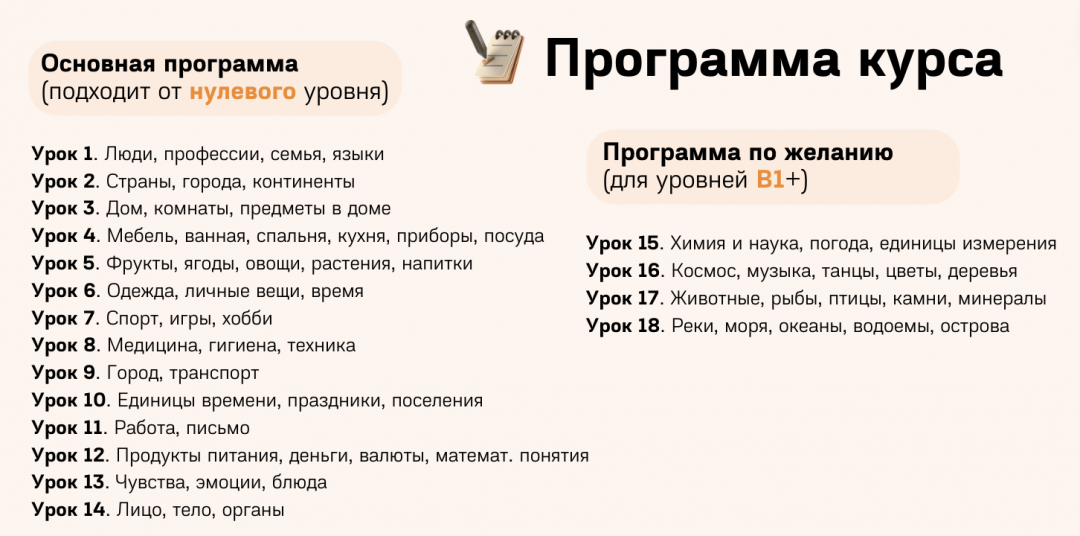 ❓ Для каких уровней курс? У меня начальный / высокий уровень, мне подойдет?