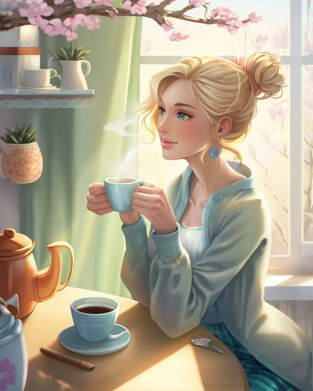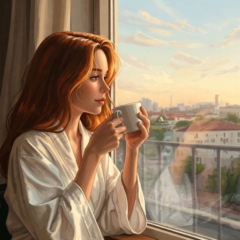 артинки Рисованные Женщина Утром
