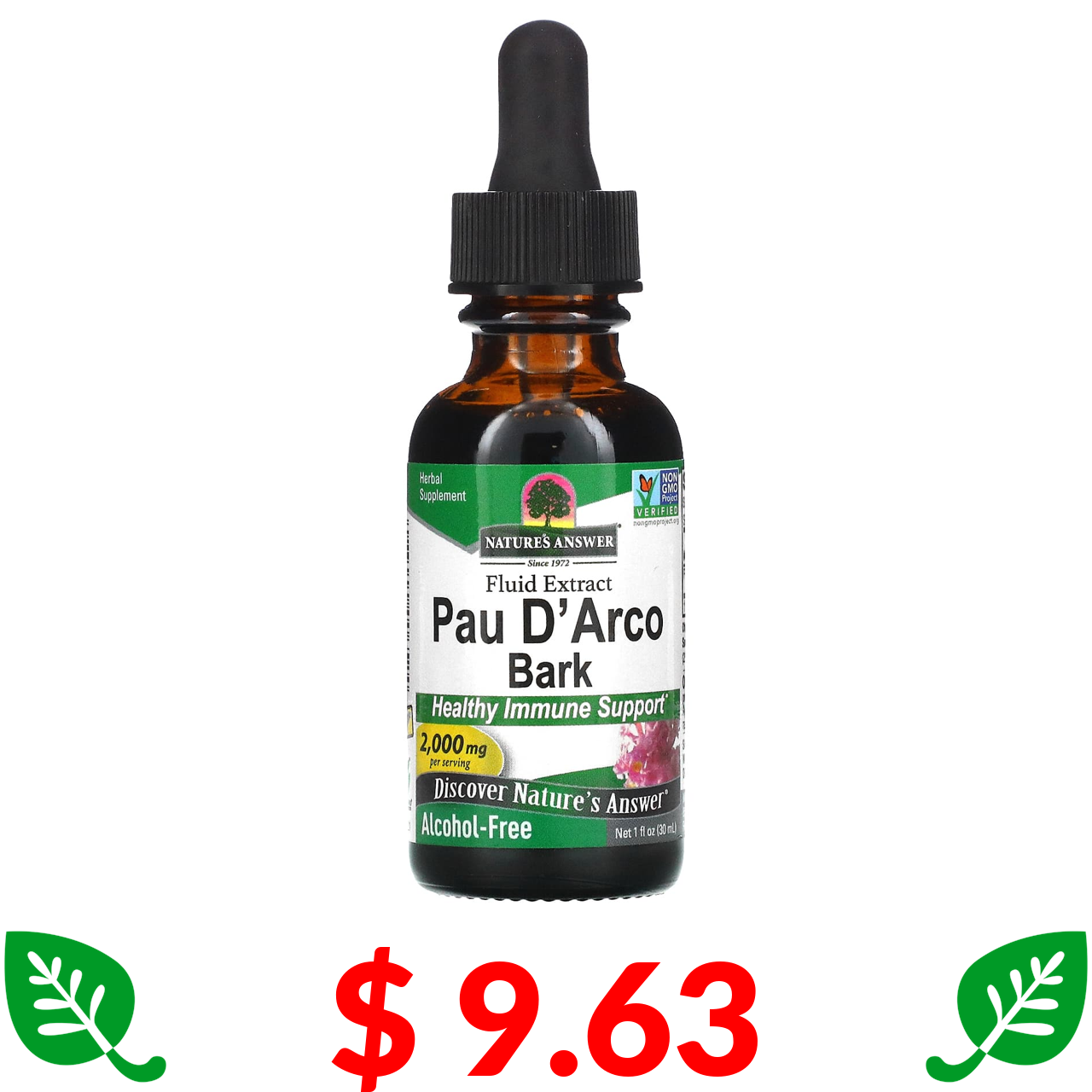 $ 9.63 Nature's Answer, кора мурашиного дерева, без спирту, 2000 мг, 30 мл (1 рідка унція)