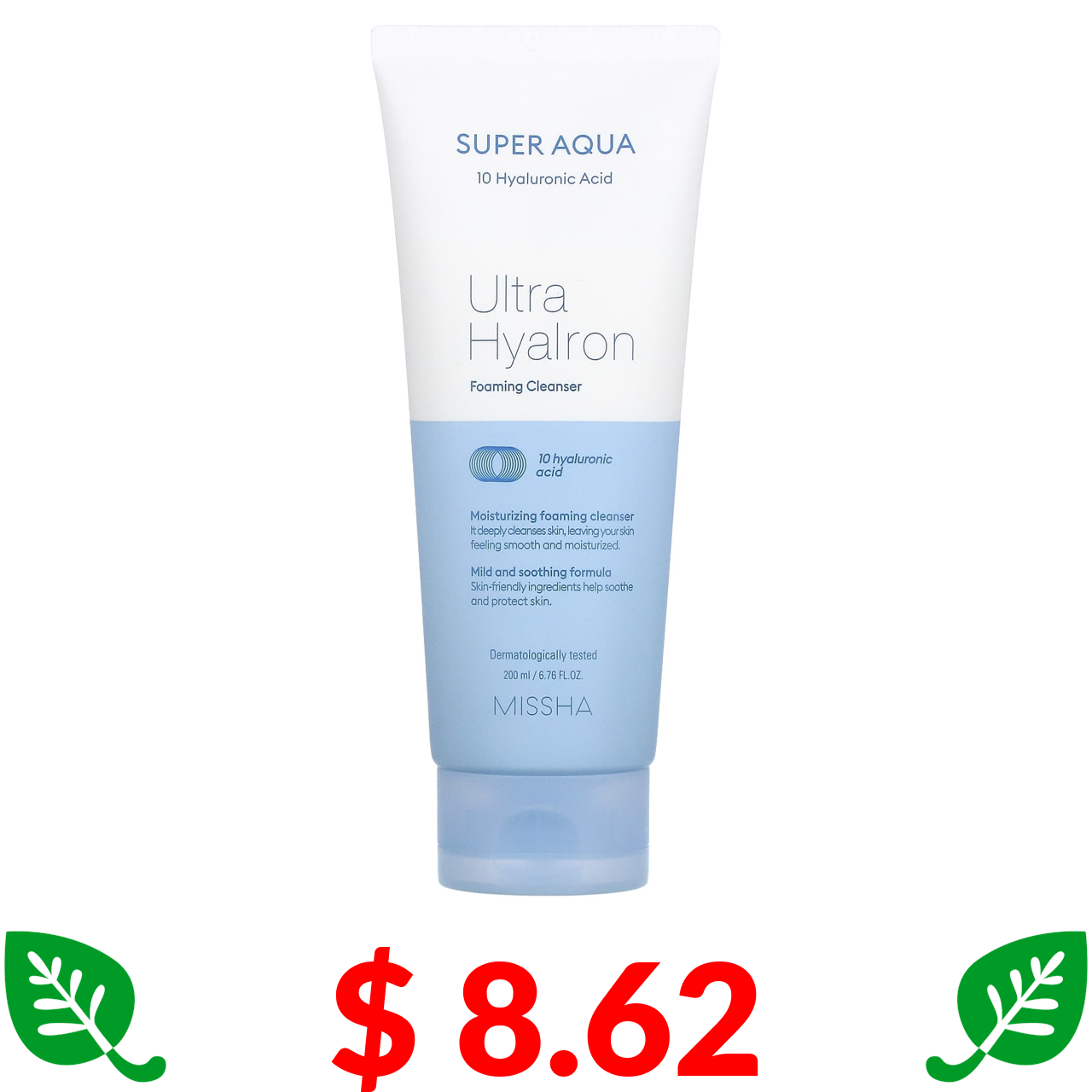 $ 8.62 Missha, Super Aqua Ultra Hyalon, очищувальна пінка, 200 мл (6,76 рідк. унції)