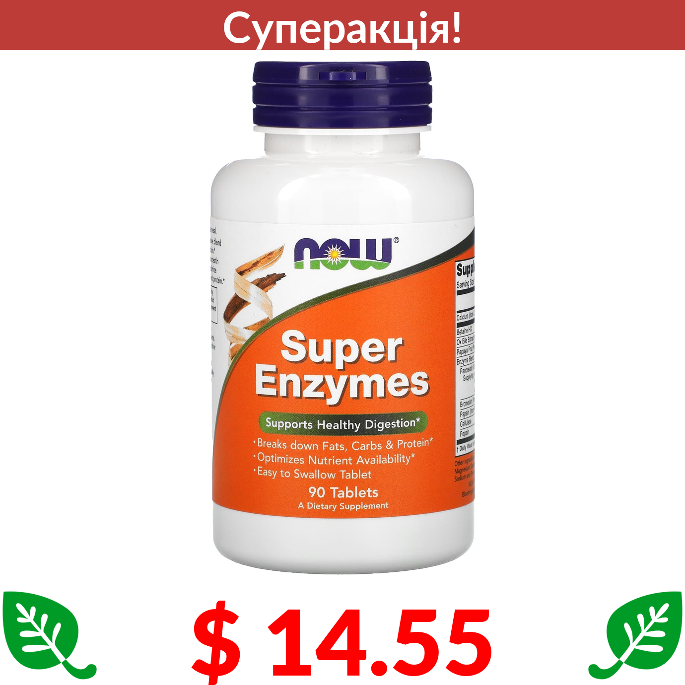 $ 14.55 Now Foods, суперферменти, 90 таблеток