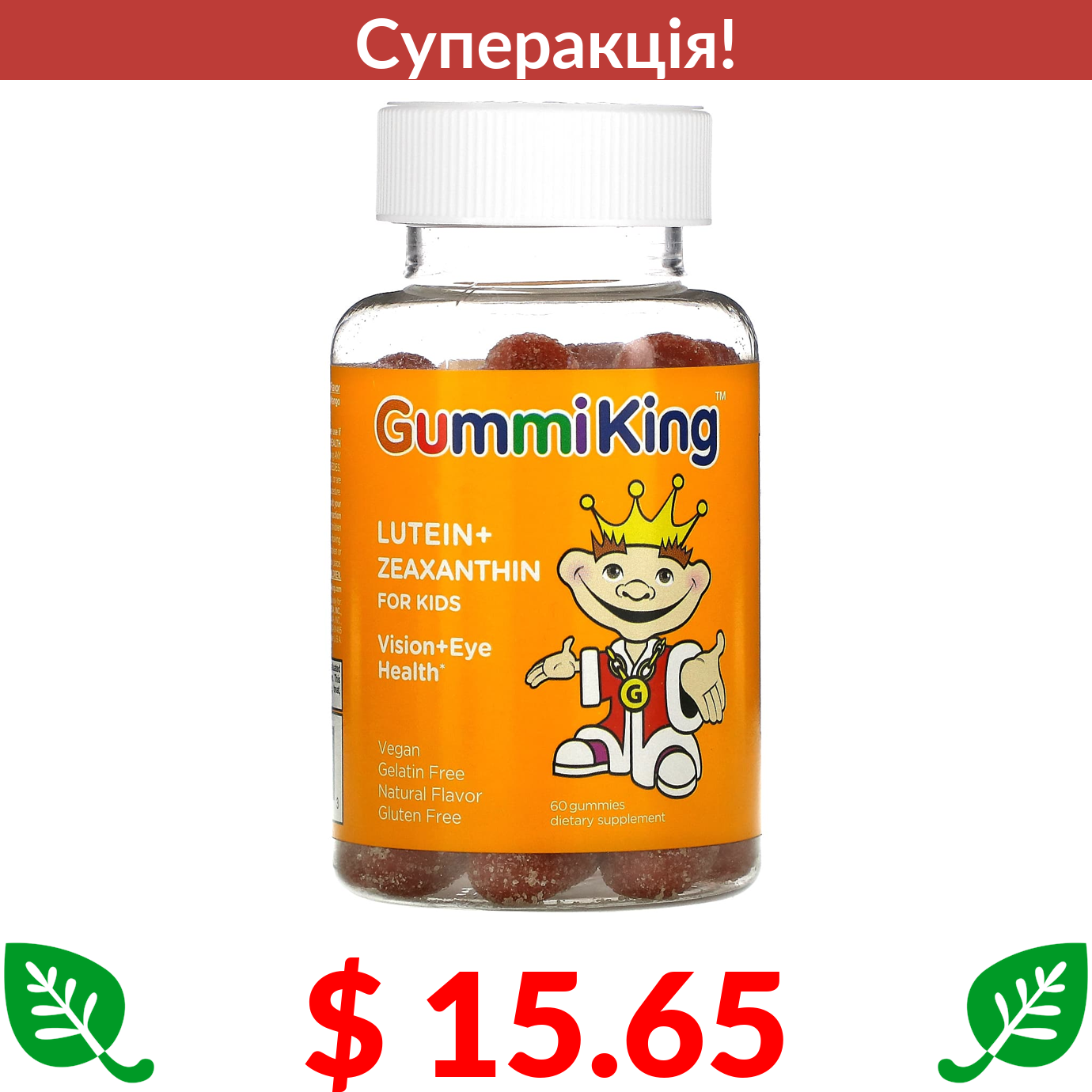 $ 15.65 GummiKing, лютеїн + зеаксантин для дітей, манго, 60 жувальних таблеток