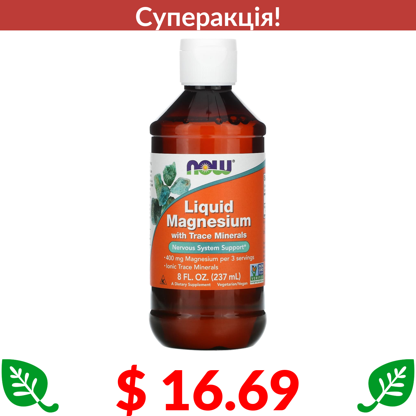 $ 16.69 Now Foods, Liquid Magnesium with Trace Minerals, 8 fl oz (237 ml)