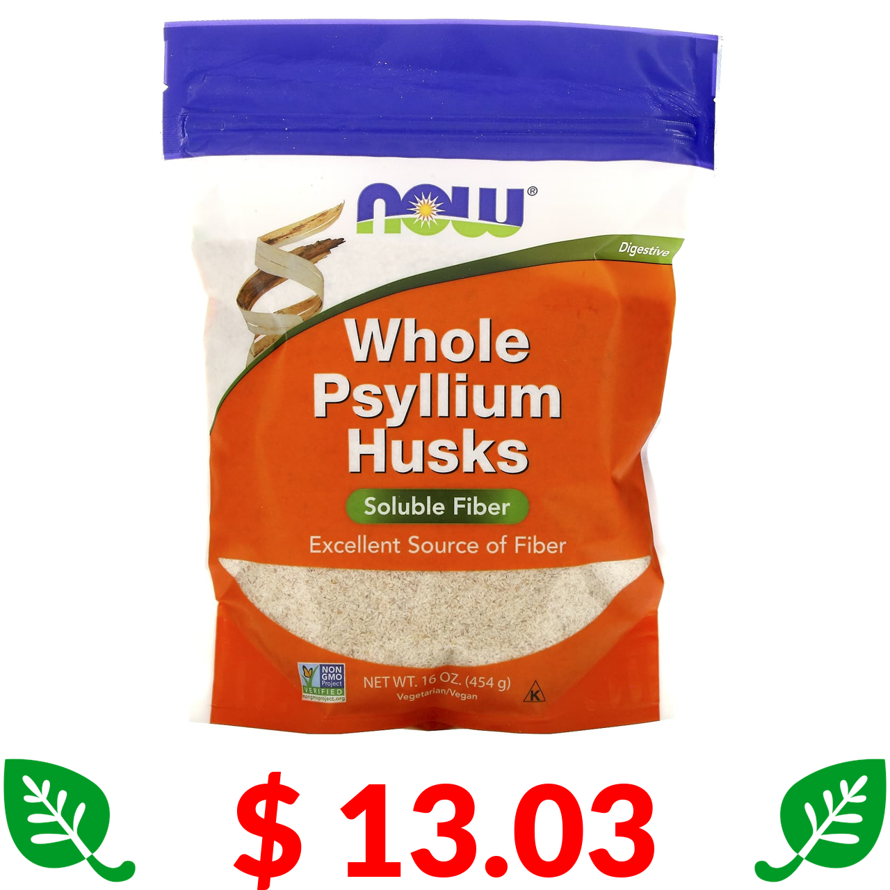 $ 13.03 Now Foods, Цільне лушпиння подорожника, 454 г (16 унцій)