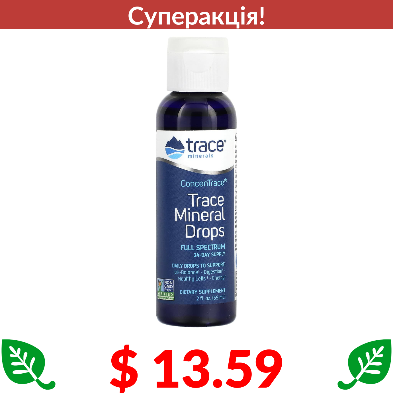 $ 13.59 Trace Minerals Research, ConcenTrace, мікроелементи у формі крапель,59 мл (2 рідк. унцій)