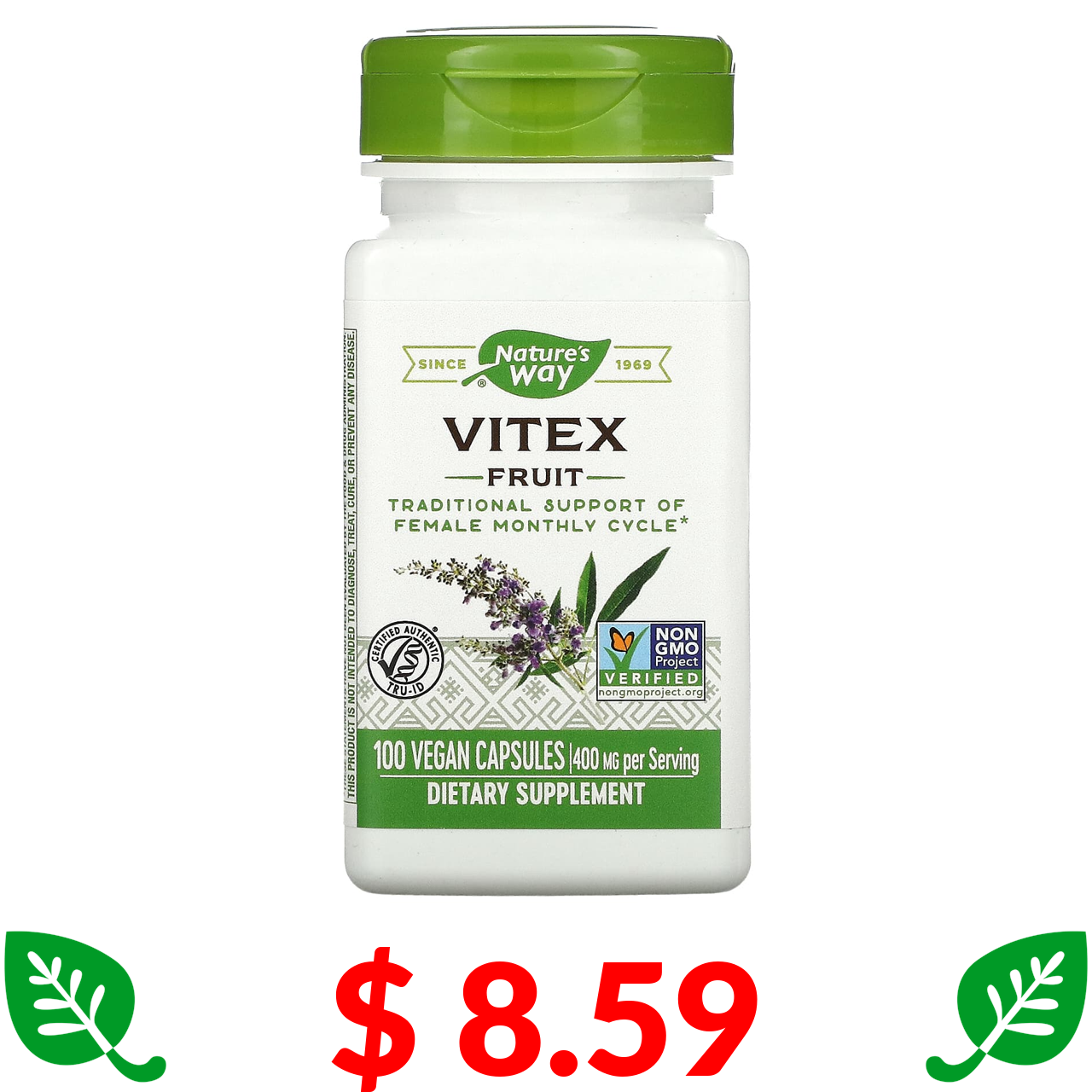 $ 8.59 Nature's Way, плоди вітекса, 400 мг, 100 веганських капсул