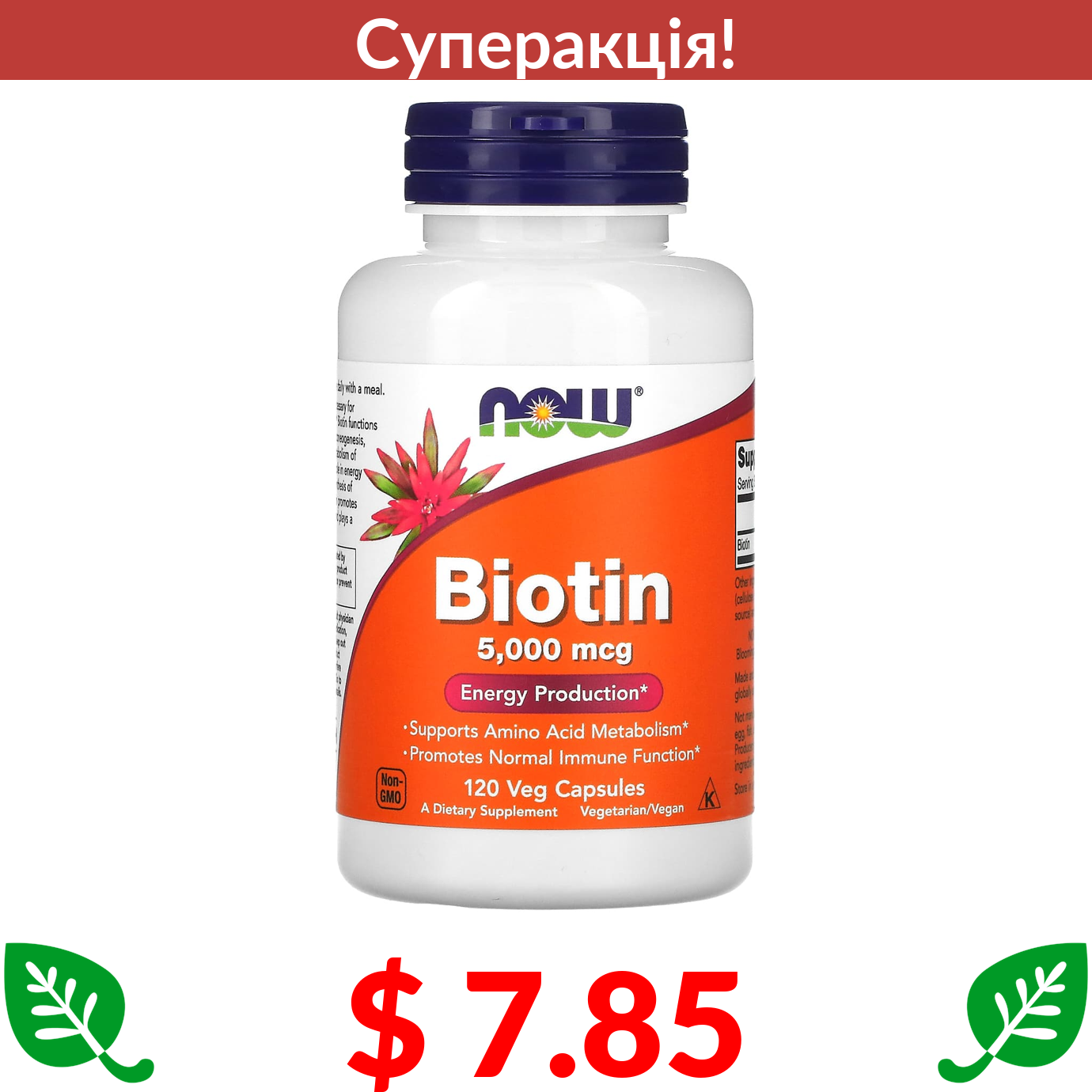 $ 7.85 Now Foods, біотин, 5000 мкг, 120 вегетаріанських капсул