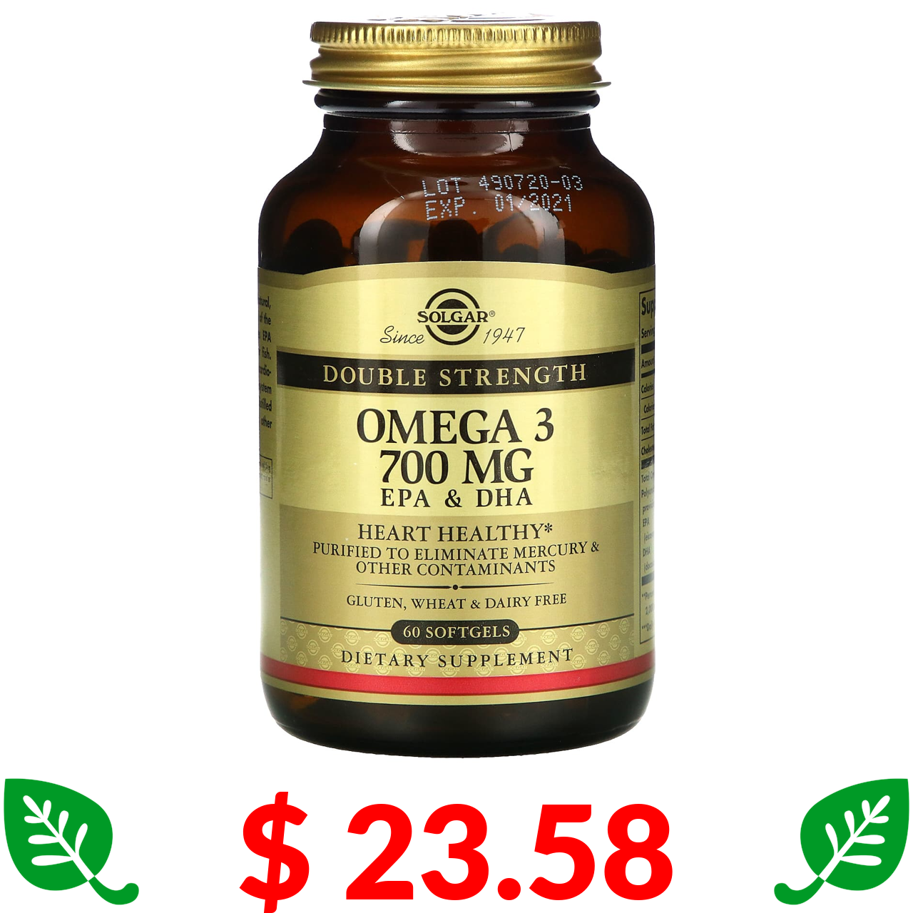 $ 23.58 Solgar, омега-3, ЕПК і ДГК, подвійної концентрації, 700 мг, 60 капсул