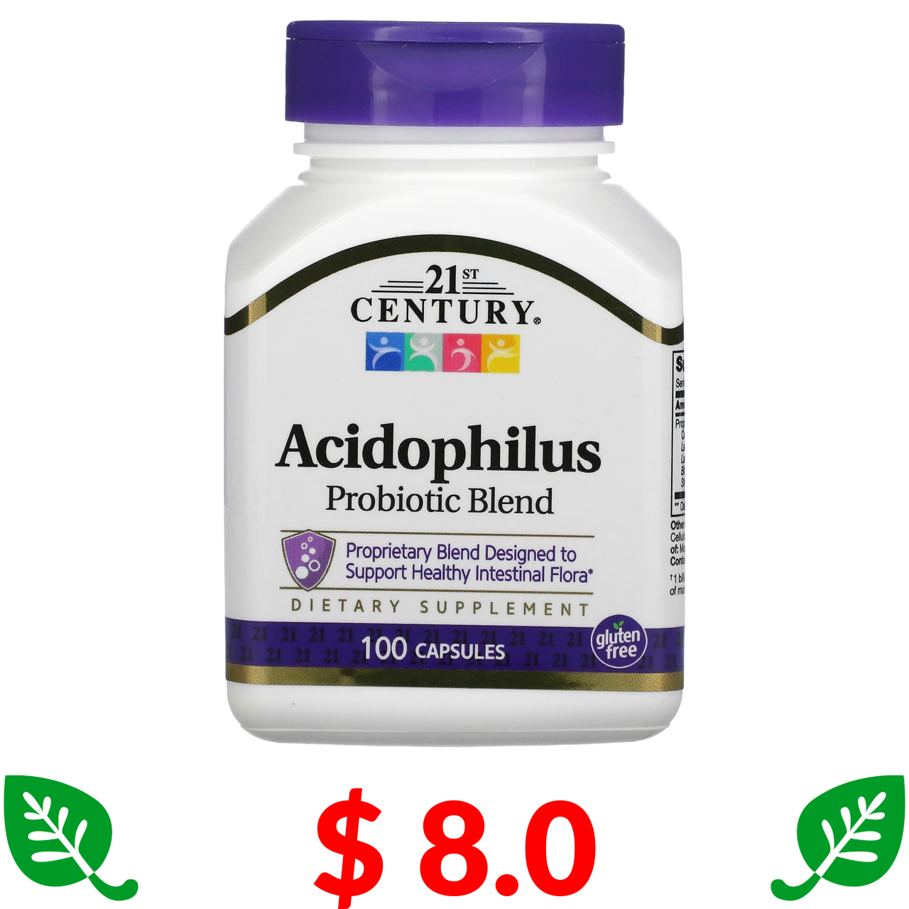 $ 8.0 21st Century, суміш ацидофільних пробіотиків (Acidophilus), 100 капсул