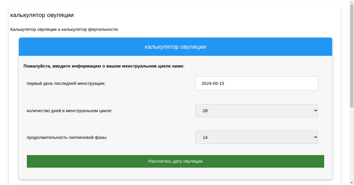 Рассчитать когда овуляция калькулятор 125 фотографий