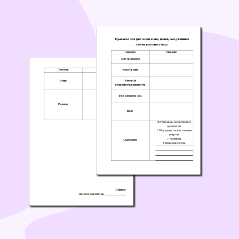 ассный час протокол проведения
