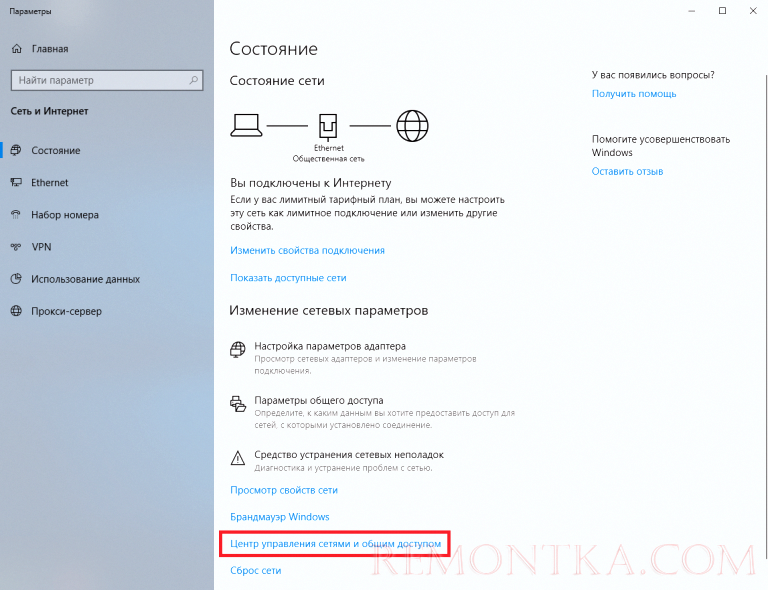 астроить сеть виндовс 10