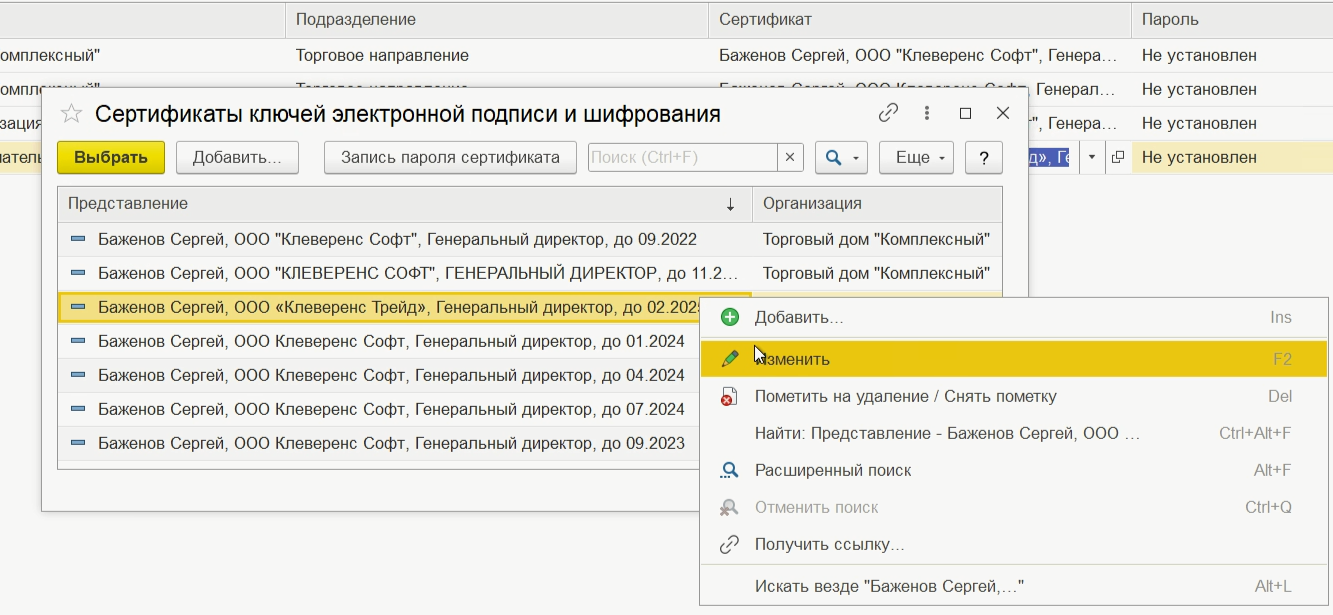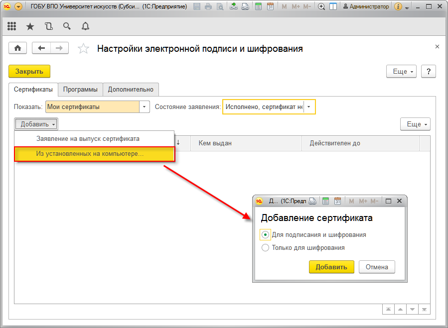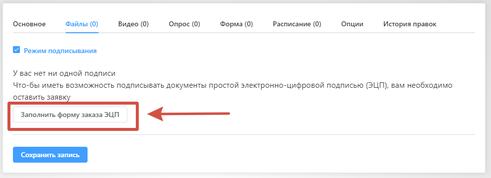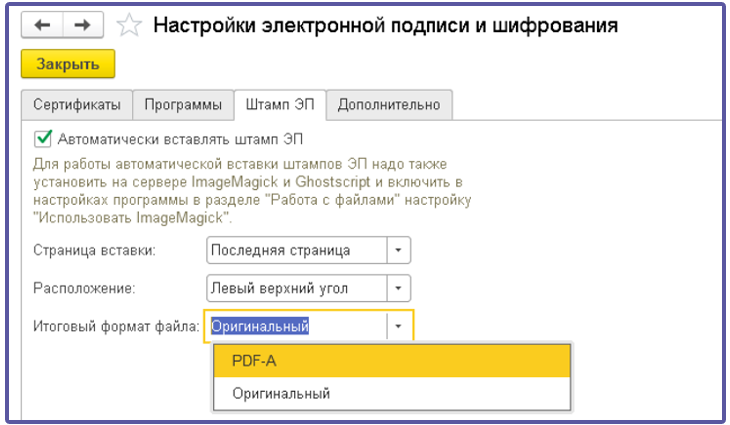 астройка подписи эцп