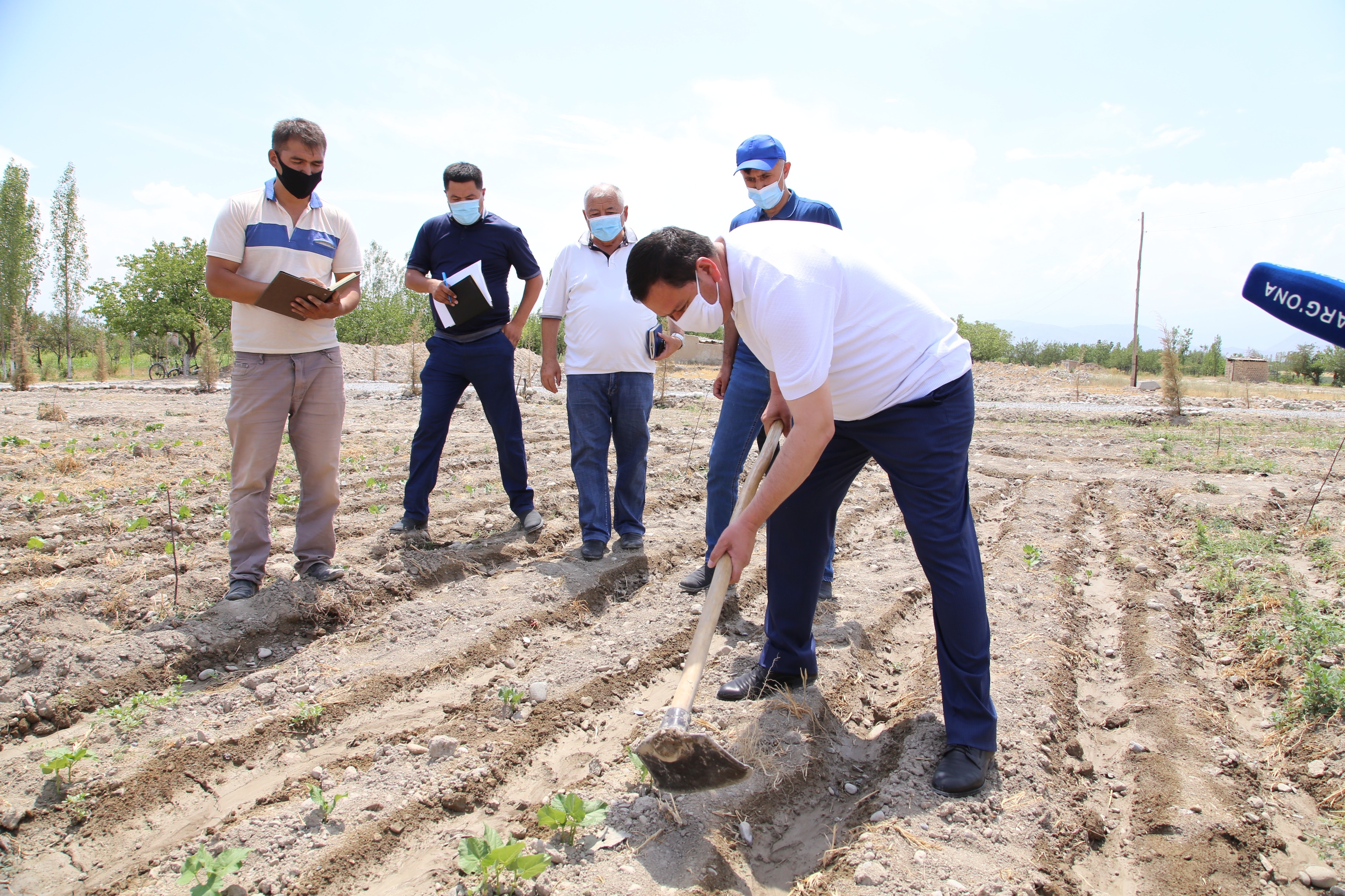 Вилоят ҳокими тумандаги “Сармазор бахт замини” фермер хўжалигидаги такрорий экин экиш учун ажратилган ер майдонидаги экинлар парвариши билан ҳам танишди. Бу ердаги мош экинининг ривожини кўздан кечириб, суғоришдан сўнг ерга ишлов берилмагани сабабли қатқалоқ юзага келганлигини тилга олди. Зудлик билан культивация қилиш учун техника ажратиб, зарур агротехник тадбирларни амалга оширишга кўрсатма берди.