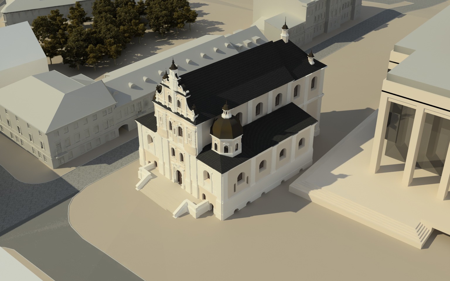 за палацам аднаўляецца стары касцёл, які робіцца дамінантай-канкурэнтам палаца Рэспублікі. да таго ж,ён будзе ўказваць на пачатак Верхняга гораду.