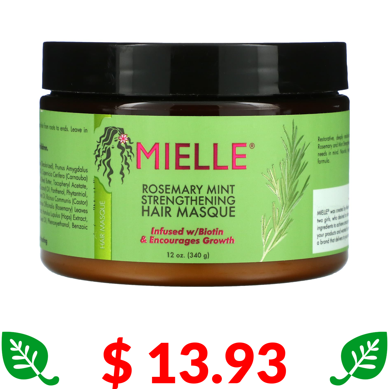 $ 13.93 Mielle, Strengthening Hair Masque, Rosemary Mint, 12 oz (340 g)