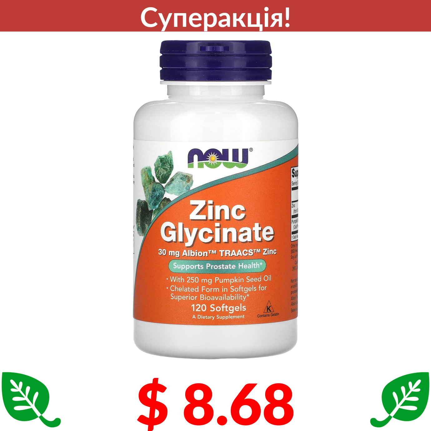 $ 8.68 Now Foods, гліцинат цинку, 120 капсул