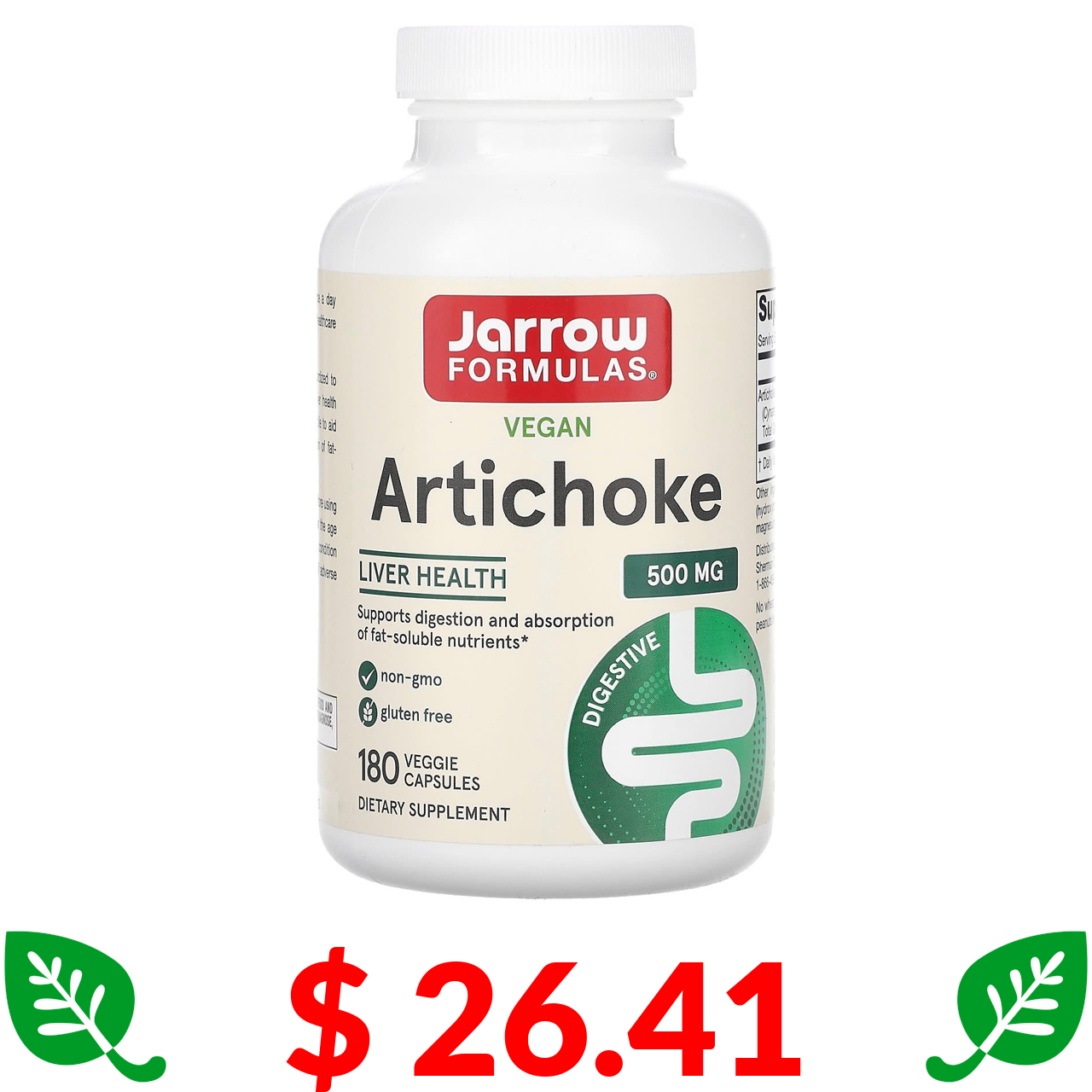 $ 26.41 Jarrow Formulas, артишок, 500 мг, 180 рослинних капсул