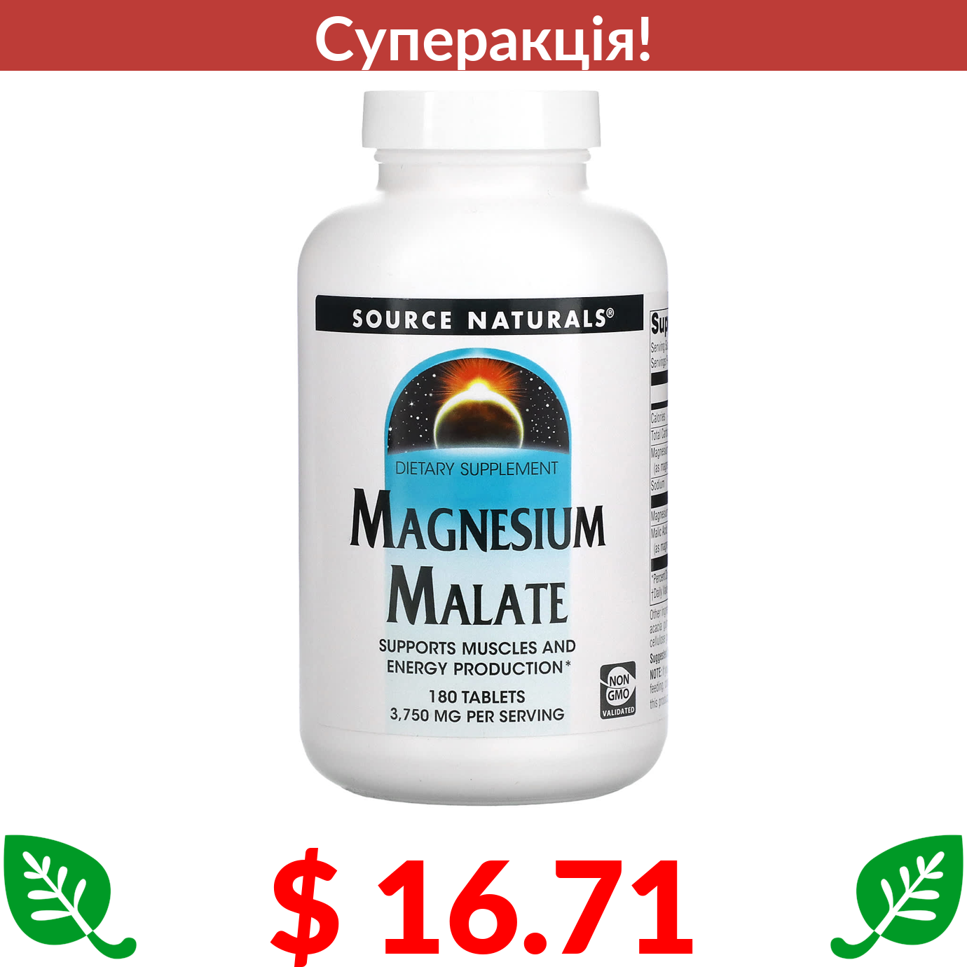$ 16.71 Source Naturals, малат магнію 3750 мг, 180 таблеток