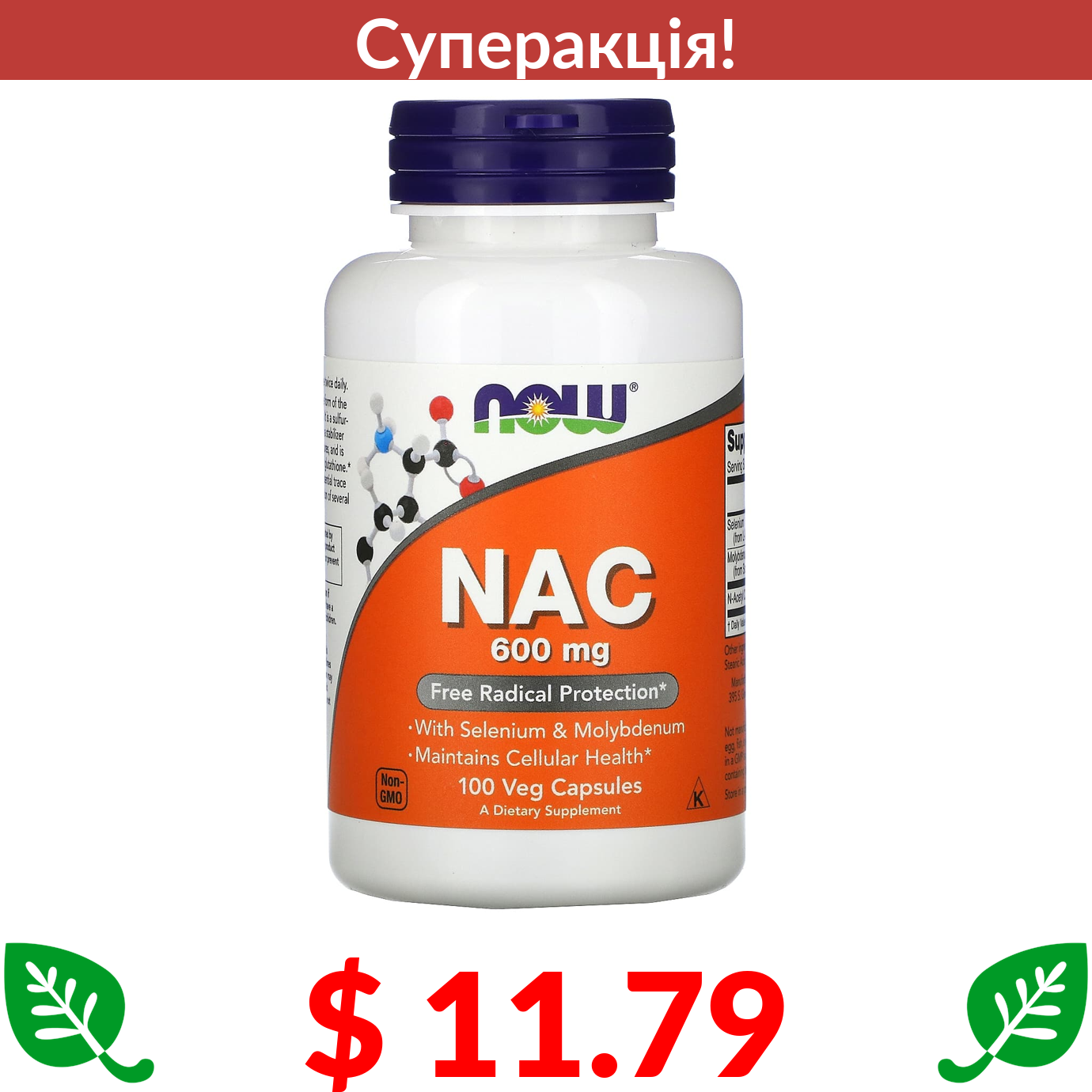 $ 11.79 Now Foods, NAC, N-ацетилцистеїн, 600 мг, 100 вегетаріанських капсул