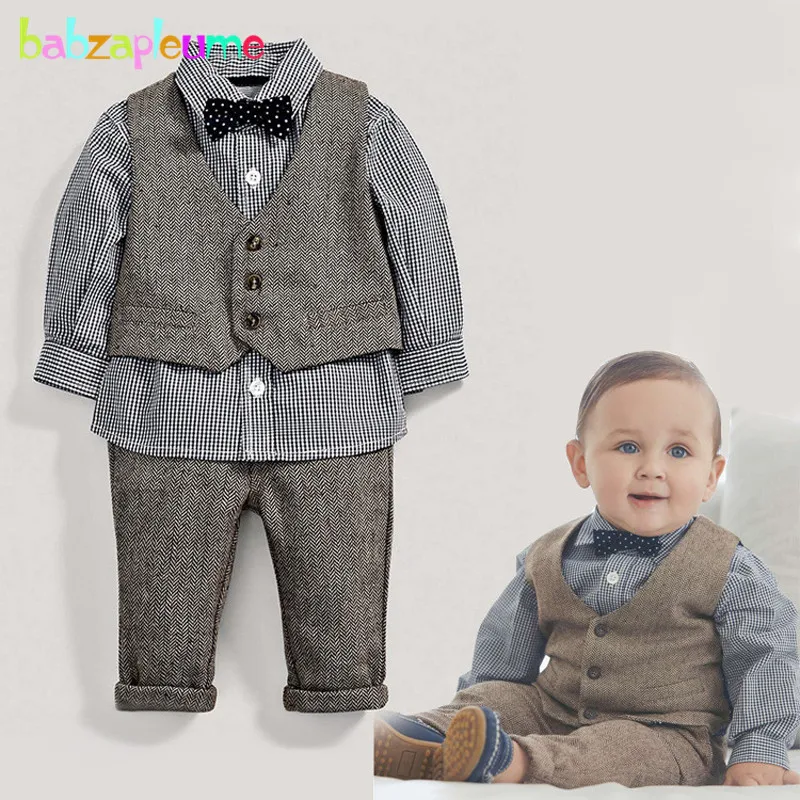 "babzapleume 3PCS/spring autumn newborn baby boys clothes shirt+pants+vest 1st birthday gentleman suit infant clothing set BC1510" * Buy Now Just For 17$