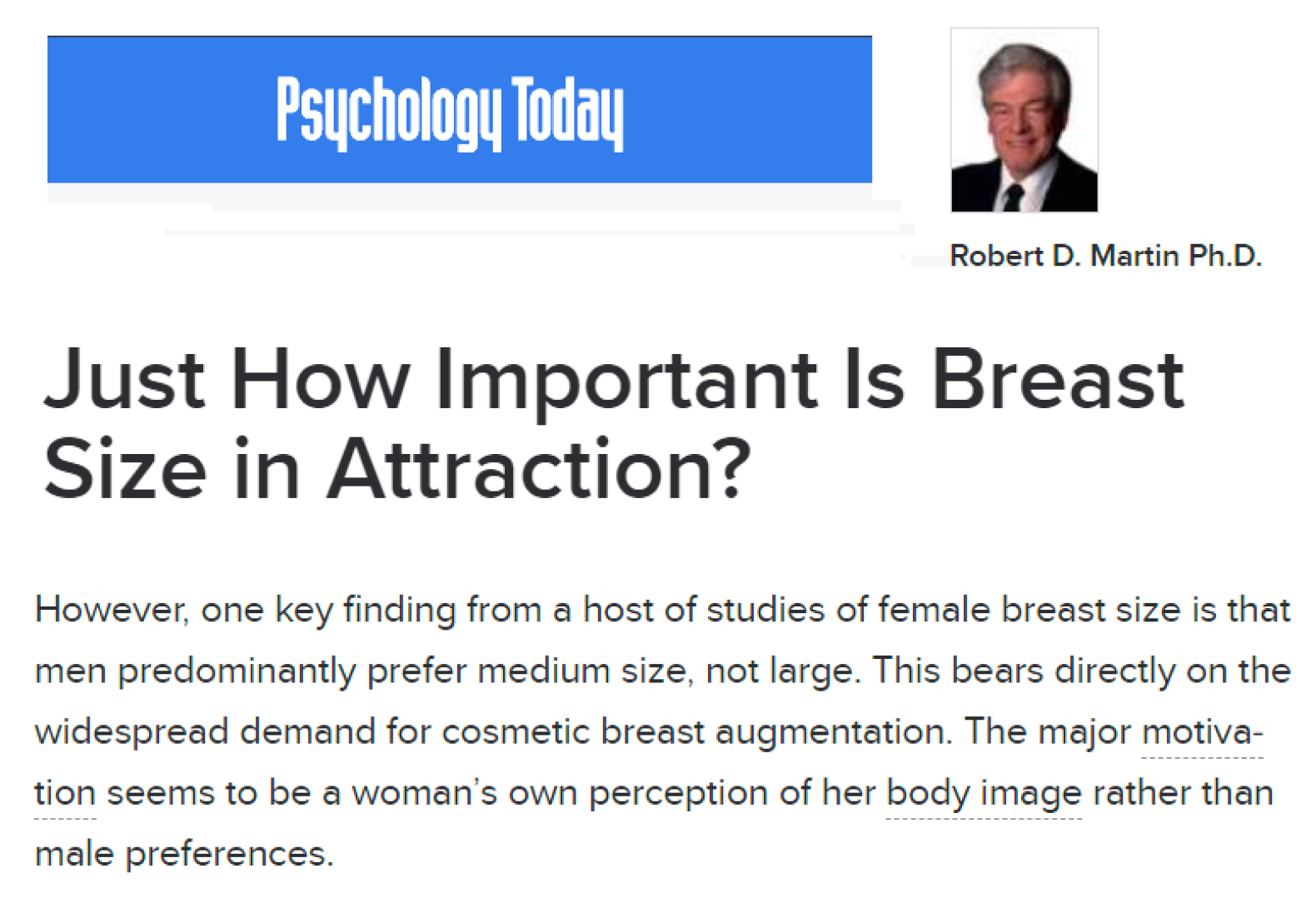Женщины предполагают, что могут разглядеть модный маркетинг и другую ложь о красоте, и будут утверждать, что знают, что мужчинам нравятся пышные формы. Но они часто не понимают, что на самом деле означает фраза «мужчинам нравятся формы». Они могут представить себе моделей нижнего белья в бюстгальтерах пуш-ап или актрис, чьи формы далеко не соответствуют пропорциям, которые предпочитают мужчины. Эти представления о сексуальной привлекательности получение из медиа неточны.