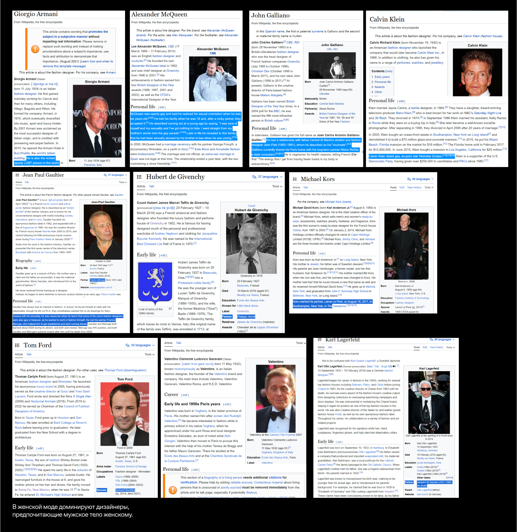 Это проверенный факт, что большинство влиятельных модельеров не привлекают женщины. Было бы неразумно предполагать, что это не влияет на их вкусы, а также неразумно предполагать, что их вкусы не влияют на их работу.